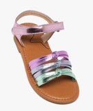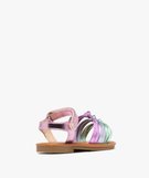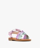 Sandales fille avec brides souples, croisées et nouées ! On craque complètement pour leur effet métallisé et leurs multiples couleurs. La bride à la cheville se ferme par scratch pour un ajustement facile et rapide, parfait pour les petites mains. Avec une semelle intérieure moelleuse, ces sandales offrent beaucoup de confort. Des nu-pieds à marier avec une robe de cérémonie ou un combishort en jean !