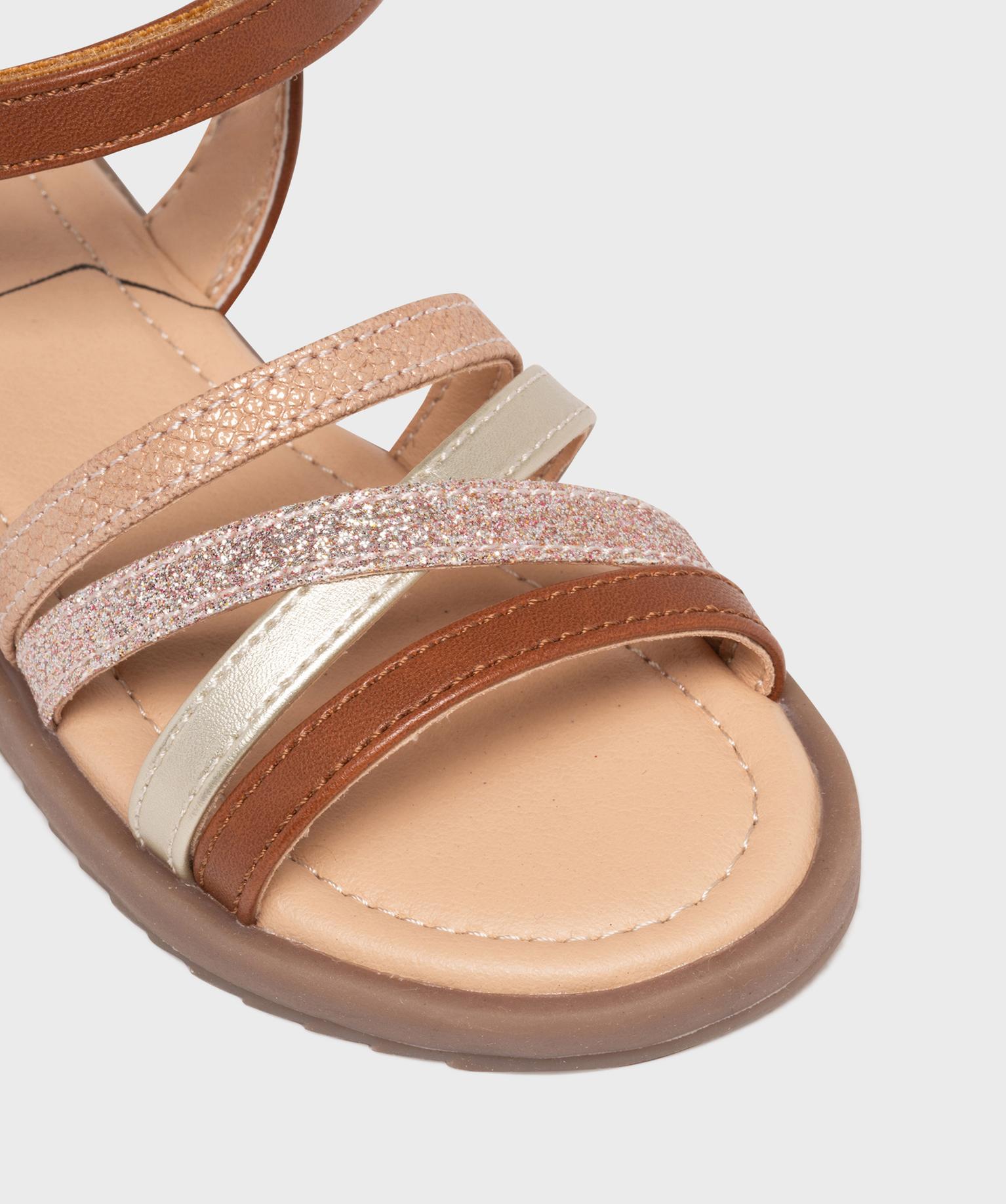 Sandales à brides métallisées et pailletées fille - Lovely Wings marron