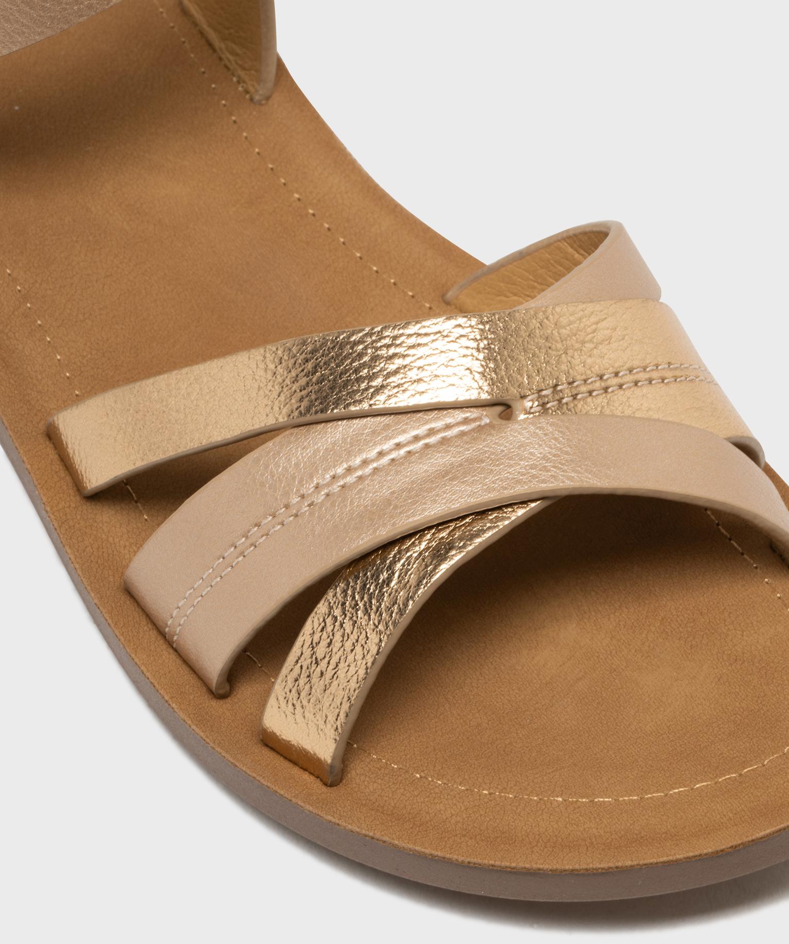 Sublimez vos pieds en toute simplicité avec ces sandales plates Valentina Baldano. Composées d’un entrelacs de brides subtilement scintillantes, ces sandales femme illuminent les tenues estivales. Ces sandales femme offrent un excellent maintien grâce à sa structure enveloppante sur l’avant du pied et ses brides fermées par une boucle métallique autour de la cheville. Elles reposent sur une semelle souple et légère offrant un excellent confort de marche. Des nu-pieds parfaits pour accompagner les looks bohème chic !