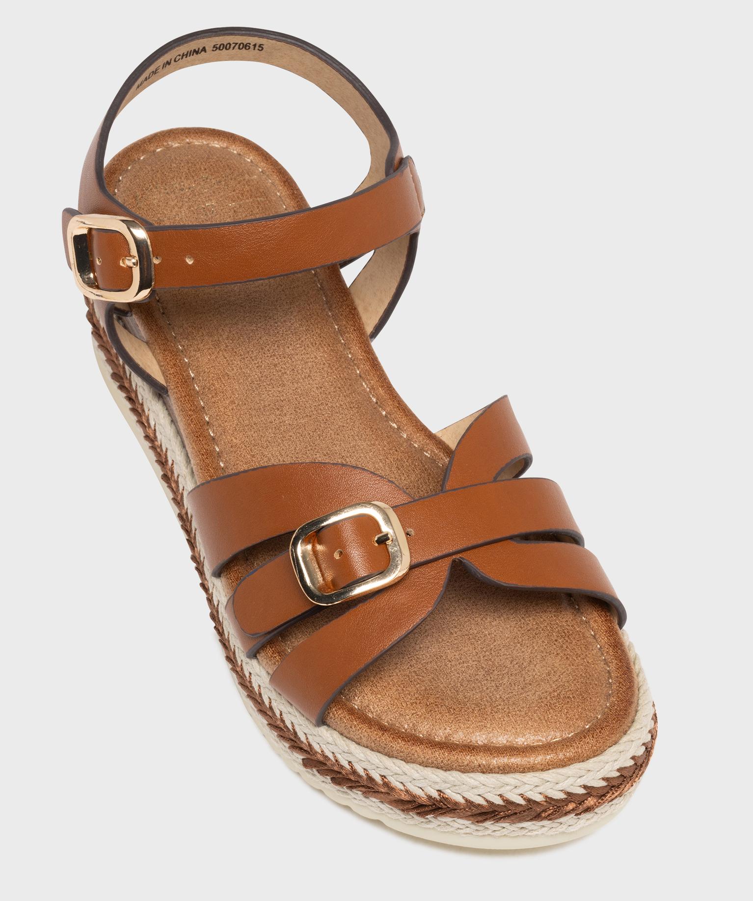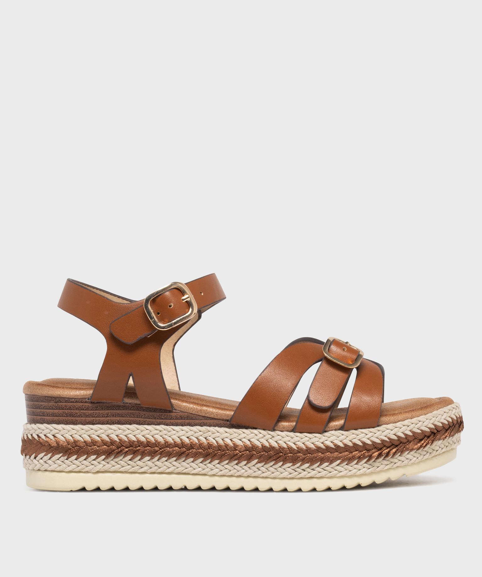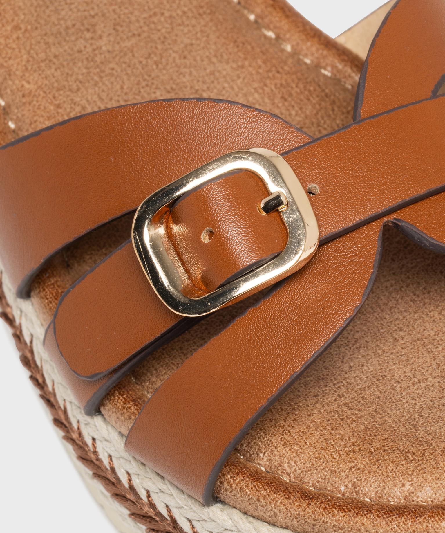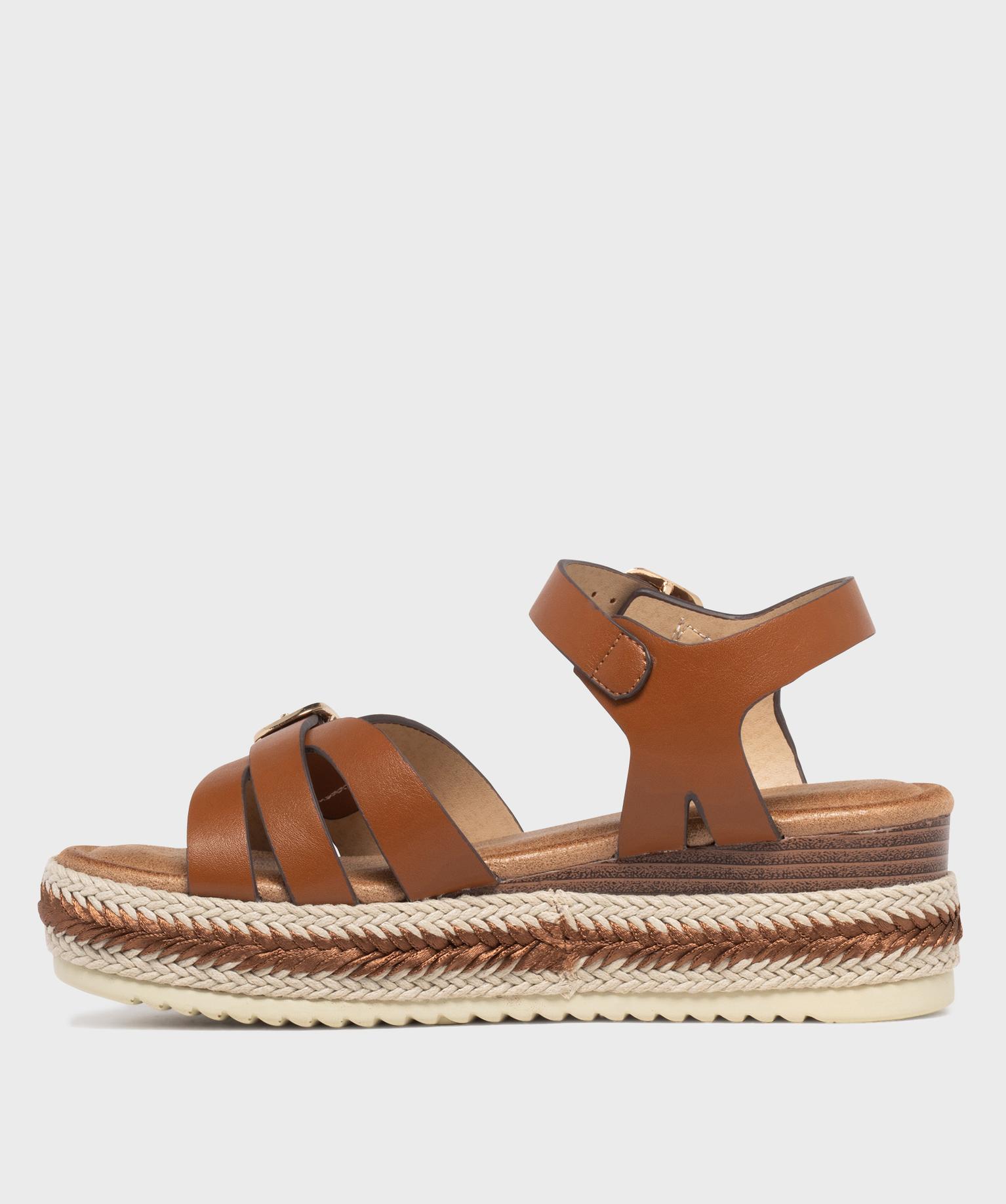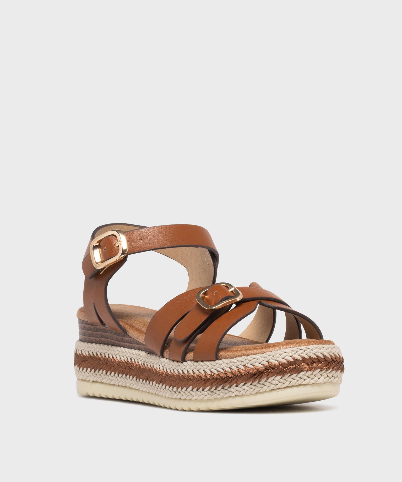 Sandales à brides sur semelle compensée femme - Valentina Baldano cognac