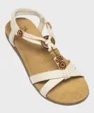 Craquez pour ces sandales femme qui allient simplicité, charme naturel et confort. Grâce à leur bride cheville élastiquée, elles s’enfilent en un geste et vous offrent un bon maintien. Sur le cou de pied, la bride façon salomé se pare de perles en bois imitation qui font toute la différence. La semelle intérieure en suédine douce apporte une sensation agréable sous le pied. Vous apprécierez la souplesse et la simplicité de ces sandales.