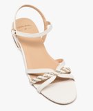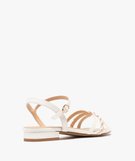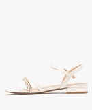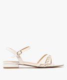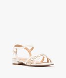 Élégantes et raffinées, ces sandales femme à petit talon sont parfaites pour un style féminin, d'inspiration rétro. Les brides avec tresse dorée ajoutent une touche de glamour, tandis que la boucle dorée à la cheville assure un ajustement parfait et une finition élégante. Idéales pour compléter vos looks d’été et tenues de cérémonie.