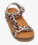 Sandales à larges brides pailletées motif léopard bébé fille beige vif