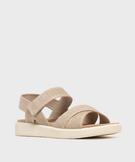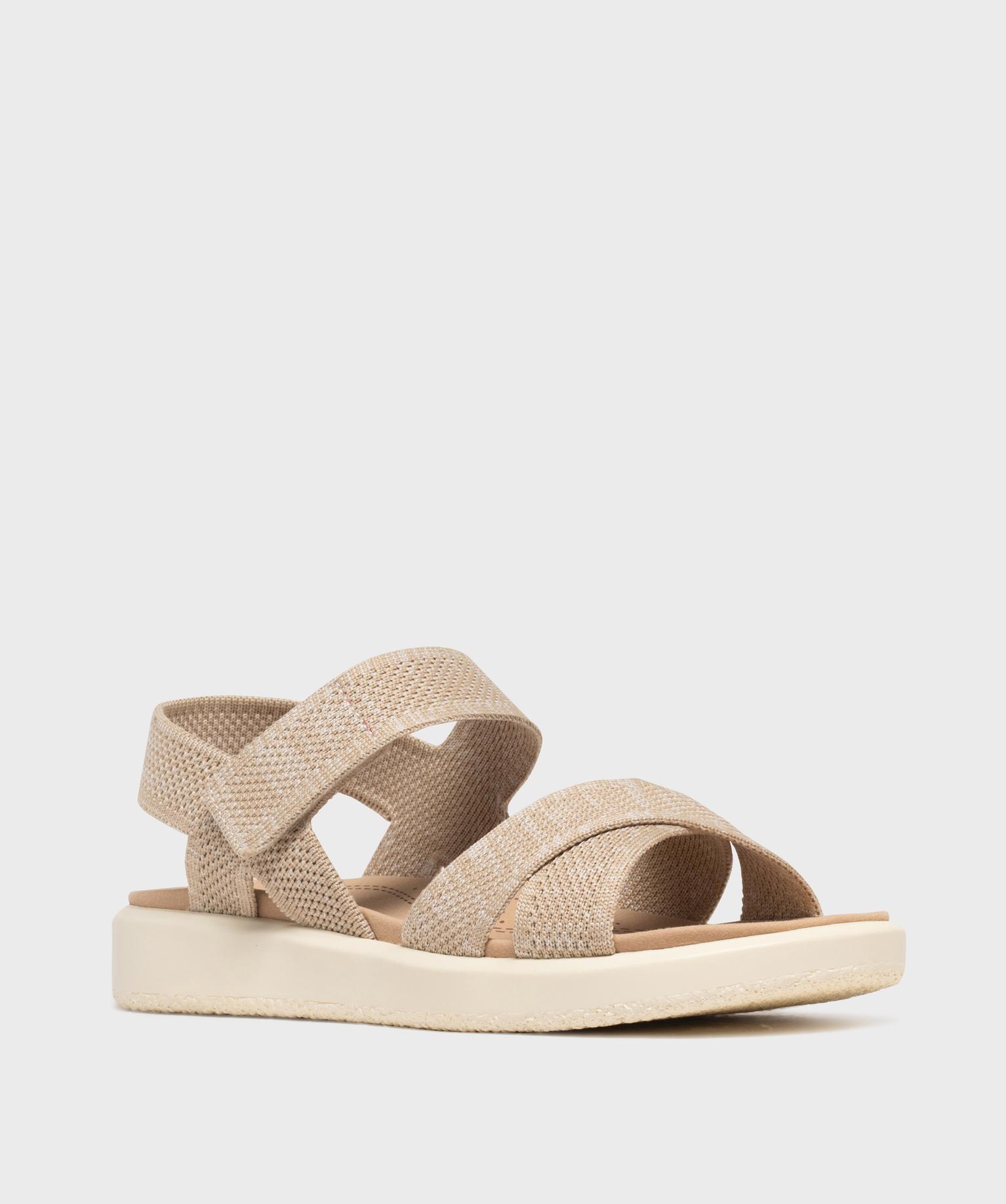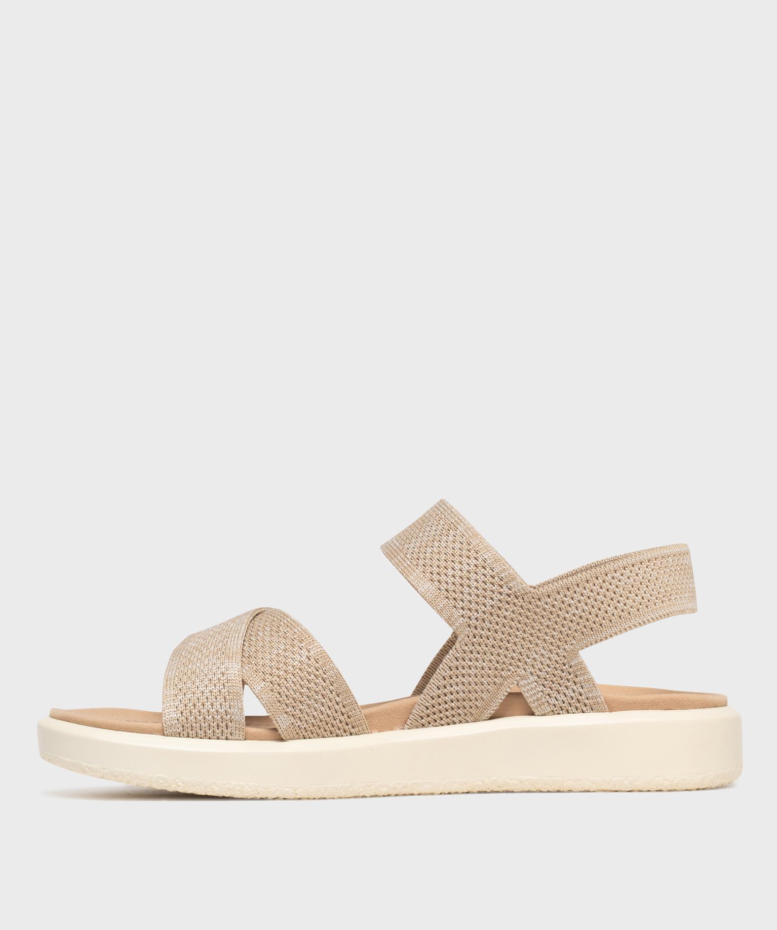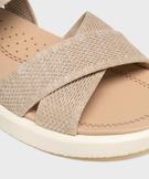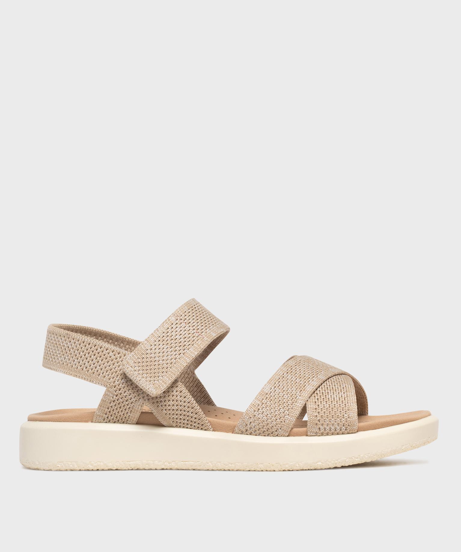 Sandales à larges brides textile et scratch femme beige