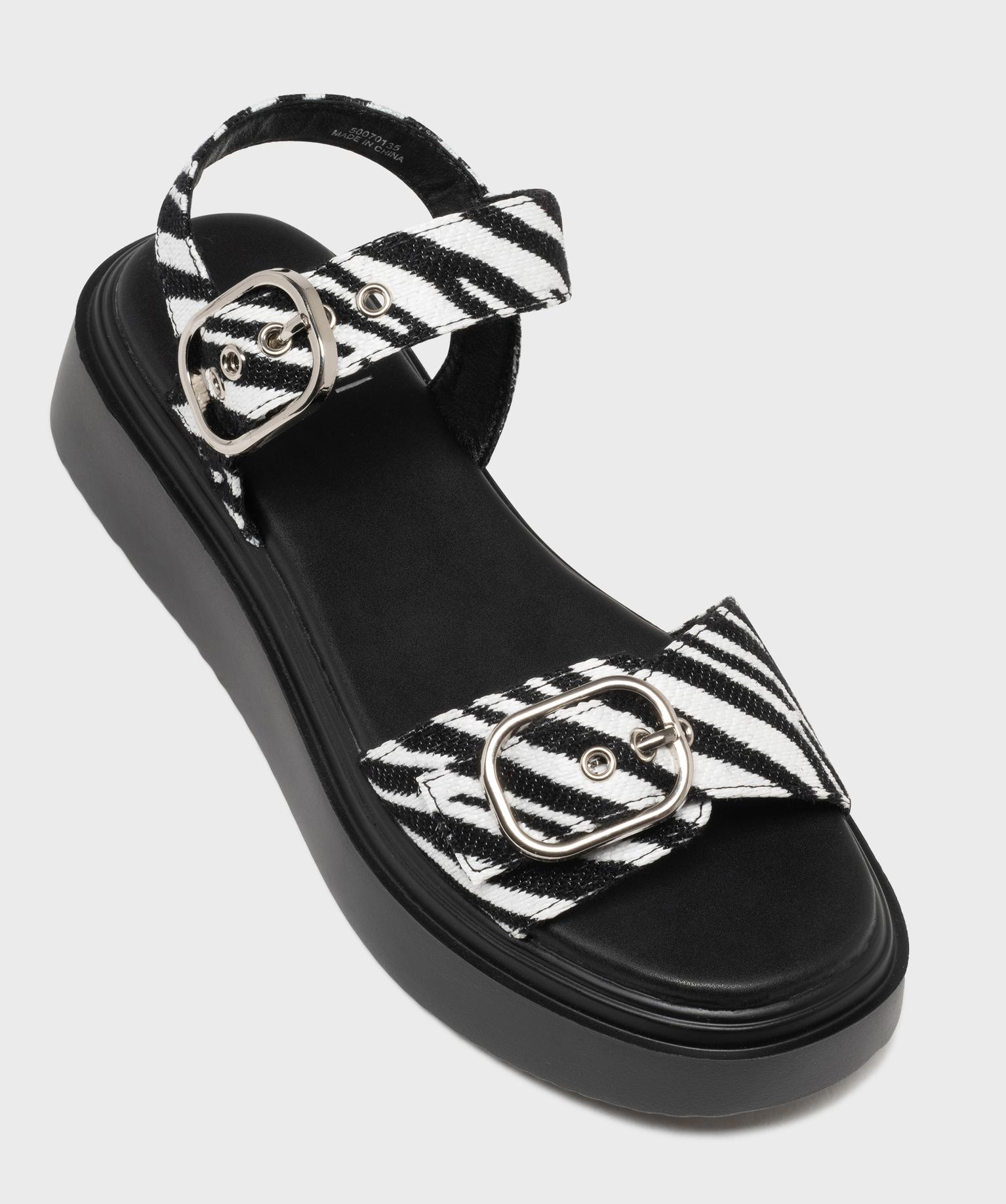 Ajoutez une touche sauvage à vos looks avec ces jolies sandales à motif animalier hyper tendance signées 5 Miles. Elles sont dotées d’une bride en toile ajustable par boucle métallique sur l’avant du pied et d’une seconde autour de la cheville. Ces sandales femme se distinguent également par leur épaisse semelle plateforme étonnamment légère et leur semelle intérieure moelleuse très confortable. Un modèle parfait pour affirmer votre style et sublimer instantanément toutes vos tenues estivales.