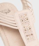 Ces sandales ornées de strass ajouteront une touche d’éclat aux tenues estivales. De par leur structure, ces sandales femme avec large bride sur l’avant, bride sur le cou-de-pied façon Salomé et brides élastiques sur les côtés, assurent un bon maintien du pied. Elles sont dotées d’une semelle intérieure moussée au toucher peau de pêche. Ces nu-pieds Emilia Rosa reposent sur une semelle crantée tendance et un petit talon compensé bordé de cordelette tressée, ajoutant une note bohème.