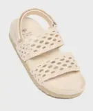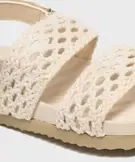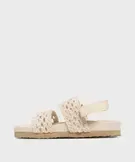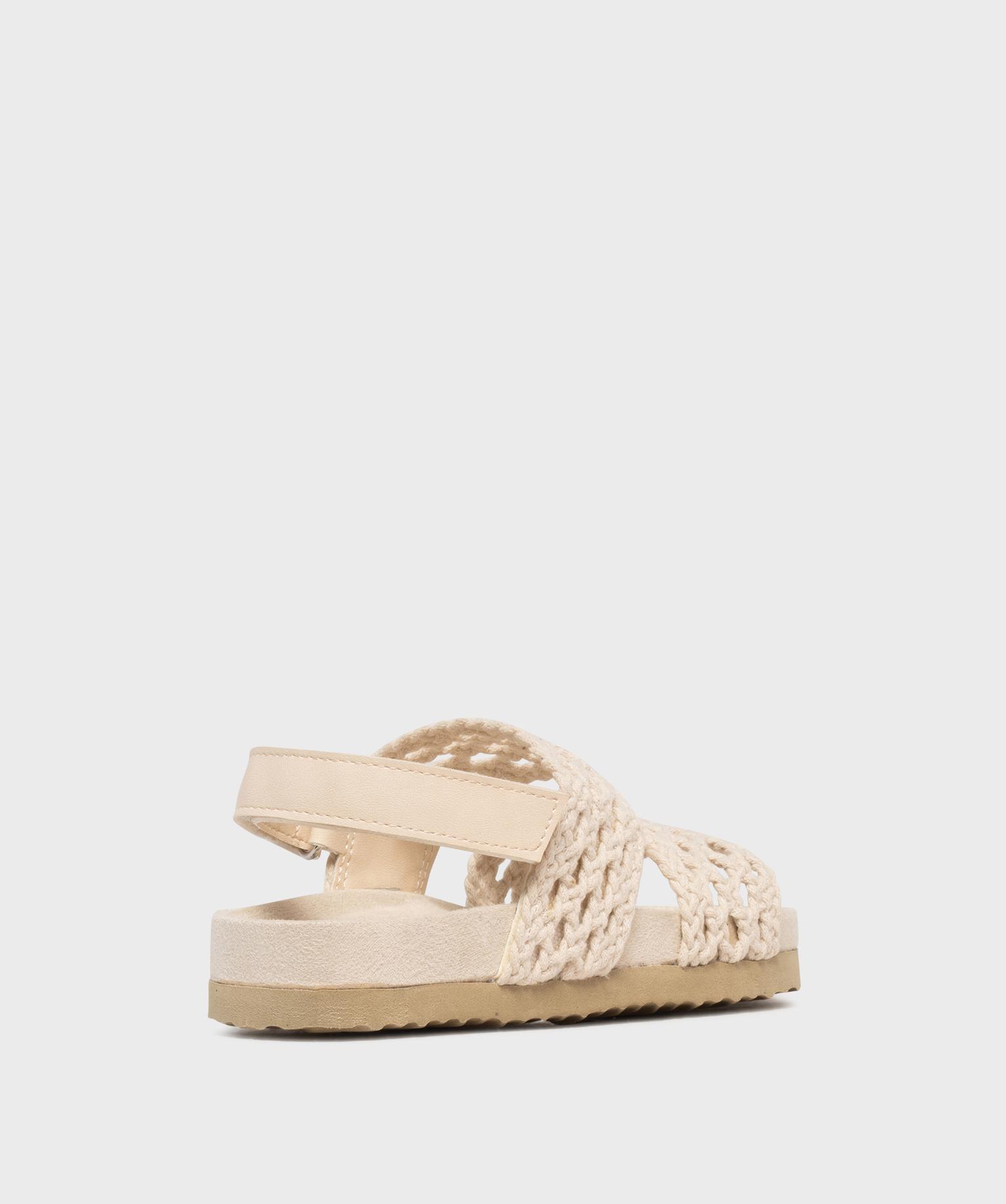 Impossible de résister au charme bohème de ces sandales fille ! On ne voit que leur deux larges brides ajourées et souples, comme tissées au crochet ! Cela rend les sandales canon, mais aussi agréables à porter ! Pour marcher en tout confort, les sandales sont également équipées d'une bride cheville à scratch et d'une semelle intérieure moelleuse. Cette semelle est en suédine velours tout doux, avec des reliefs anatomiques pour un bon soutien du pied. Votre fille portera ces nu-pieds avec une robe longue et fluide ou un combishort en jean.