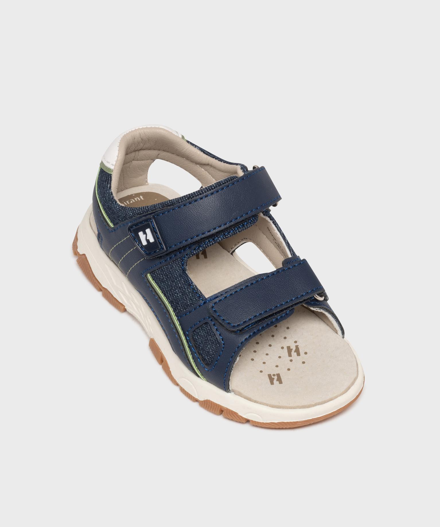 Sandales à scratch multi-matières bébé garçon - Hobiz bleu fonce