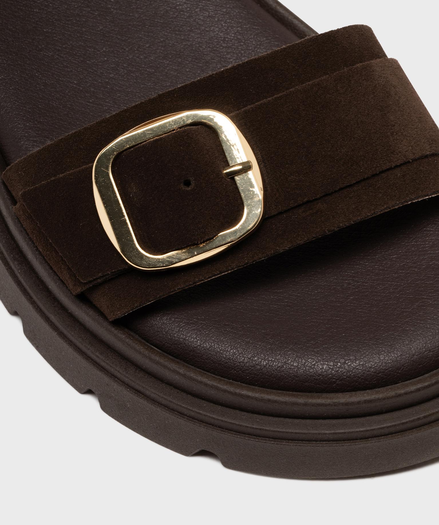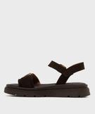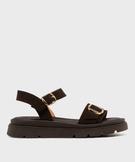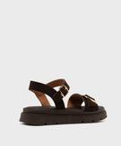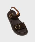 Sandales à semelle crantée dessus cuir femme - Tanéo marron fonce