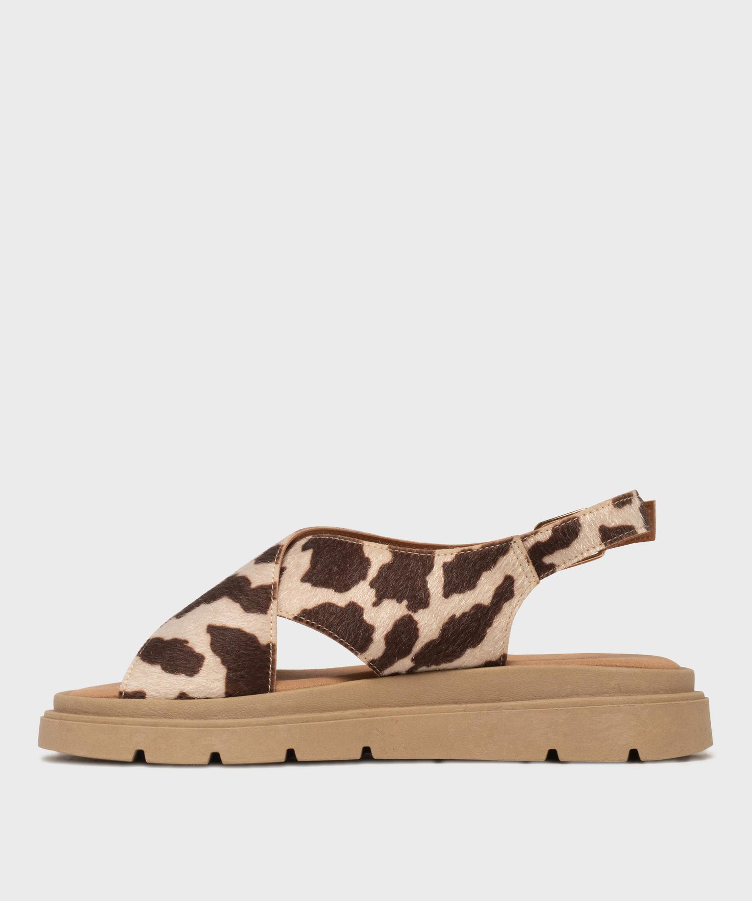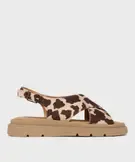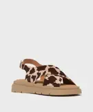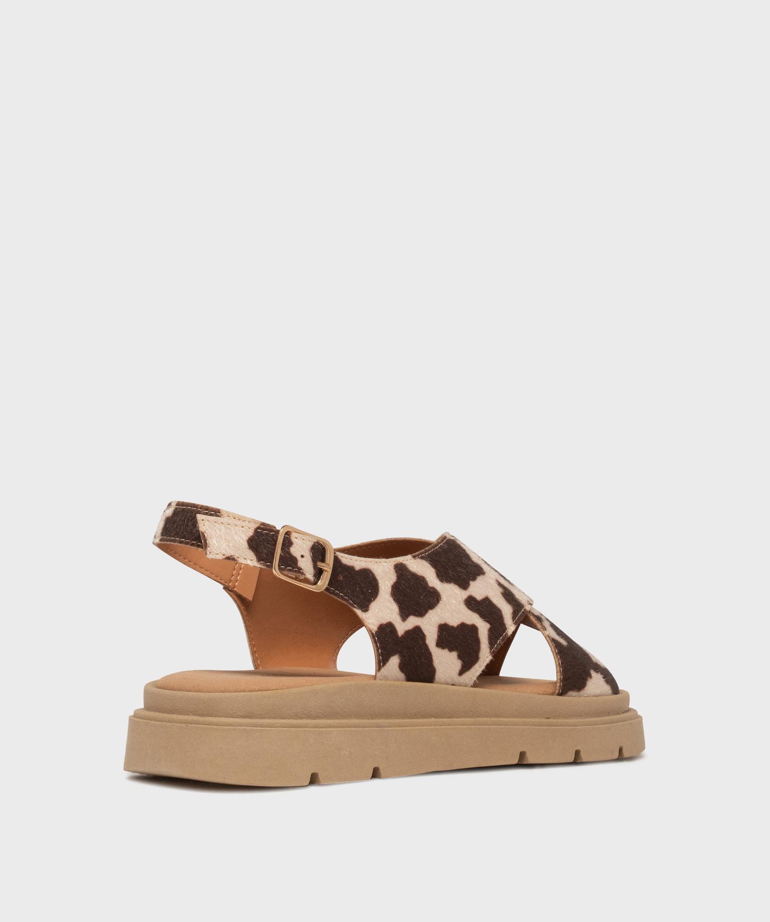 Sandales à semelle épaisse et brides croisées motif animalier femme marron
