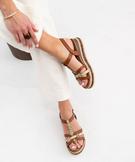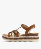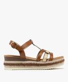 Sandales à semelle plateforme crantée et brides brillantes femme marron