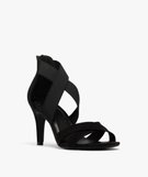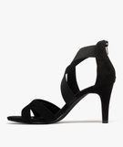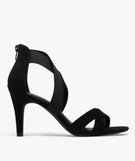 Sandales à talon aiguille en suédine à brides élastiques femme noir