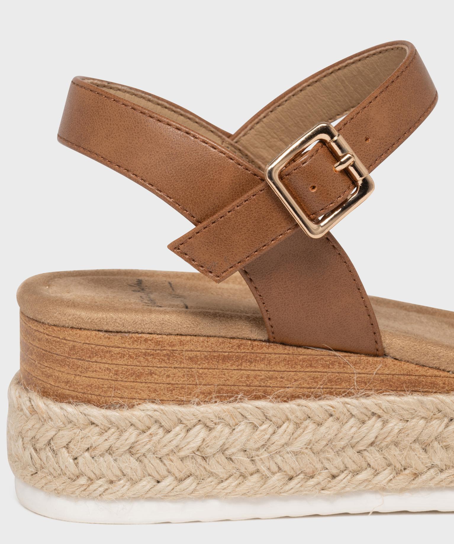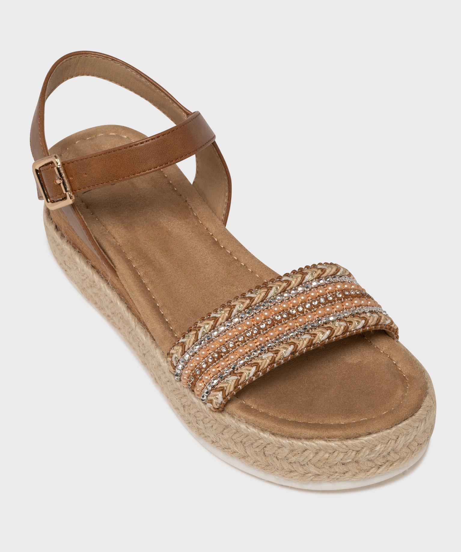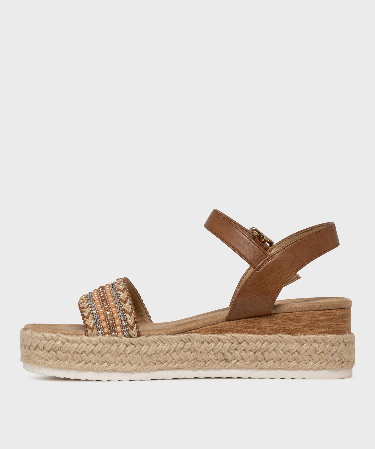 Sandales à talon compensé avec strass et semelle de corde femme marron clair