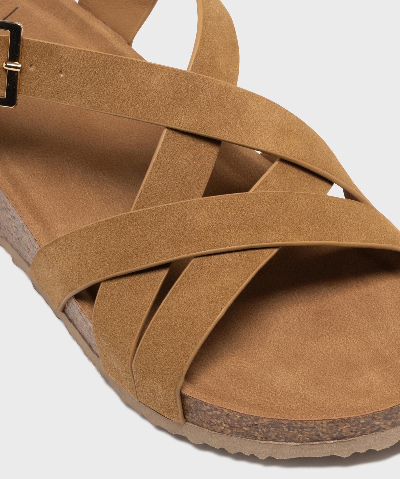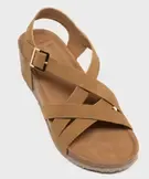 Féminines et confortables, ces sandales à talon compensé de 5 cm affichent une allure naturelle et élégante. Le dessus se compose de quatre brides entrelacées en suédine douce. Elles se ferment à l'aide d'une bride à la cheville, réglable par une boucle carrée dorée raffinée. Le talon et la semelle intermédiaire en liège imitation accentuent le côté estival du modèle. Grâce à leur semelle intérieure moelleuse, ces sandales pour femme se portent facilement toute la journée, que ce soit avec une jupe fluide, un jean flare ou un combishort léger.