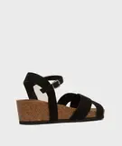 Sandales à talon compensé et larges brides croisées en suédine femme - Valentina Baldano noir
