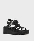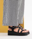 Entre spartiates et streetwear, ces audacieuses sandales pour femme vont vous séduire ! Les sandales sont composées d'un entrelacs de brides sobres, réglables à la cheville à l'aide de 2 boucles, et montées d'une sur incroyable semelle plateforme travaillée en relief très originale. Les nu-pieds présentent une finition minimaliste mais un look plein de caractère !