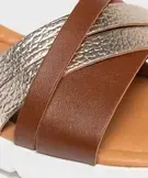Les stars de votre été ! Ces sandales femme présentent un mix de brides lisses et grainées brillantes, montées sur une semelle remarquable. Elles associent en effet semelle intermédiaire texturée et pailletée à une semelle extérieure blanche crantée, très sportswear. Un détail qui casse les codes de la sandale classique et permet toute les associations pour des looks pleins de caractère. Les sandales à talon compensé peuvent aussi se targuer d'être confortables : elles sont légères et dotées d'une semelle intérieure incroyablement moelleuse.