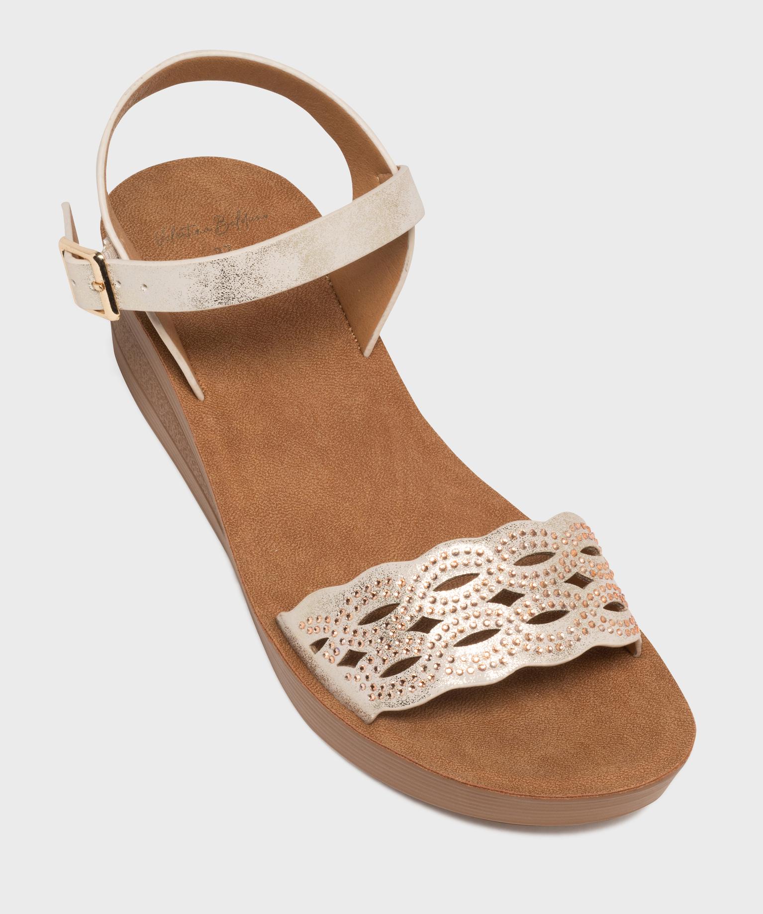 Sandales à talon compensée et bride ajourée à strass femme blanc