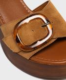 Plongez dans l'univers rétro seventies avec ces sandales à talon femme. Le dessus en cuir suédé enveloppe le pied avec douceur. La semelle intérieure en cuir moelleux assure un confort agréable tout au long de la journée. On adore leur haut talon large associé à un patin avant, signature des silhouettes vintage. La large bride ornée d’une énorme boucle imitation écaille crée un point focal ultra-stylé, équilibré par une fine bride de cheville. Des sandales iconiques qui twistent instantanément une robe fluide, une jupe à fleurs, un short taille haute ou un jean flare.