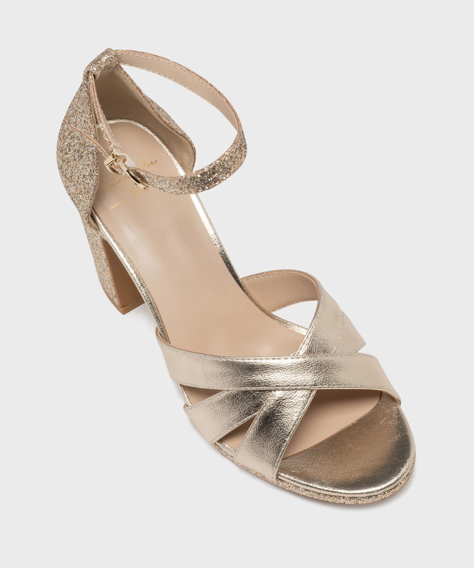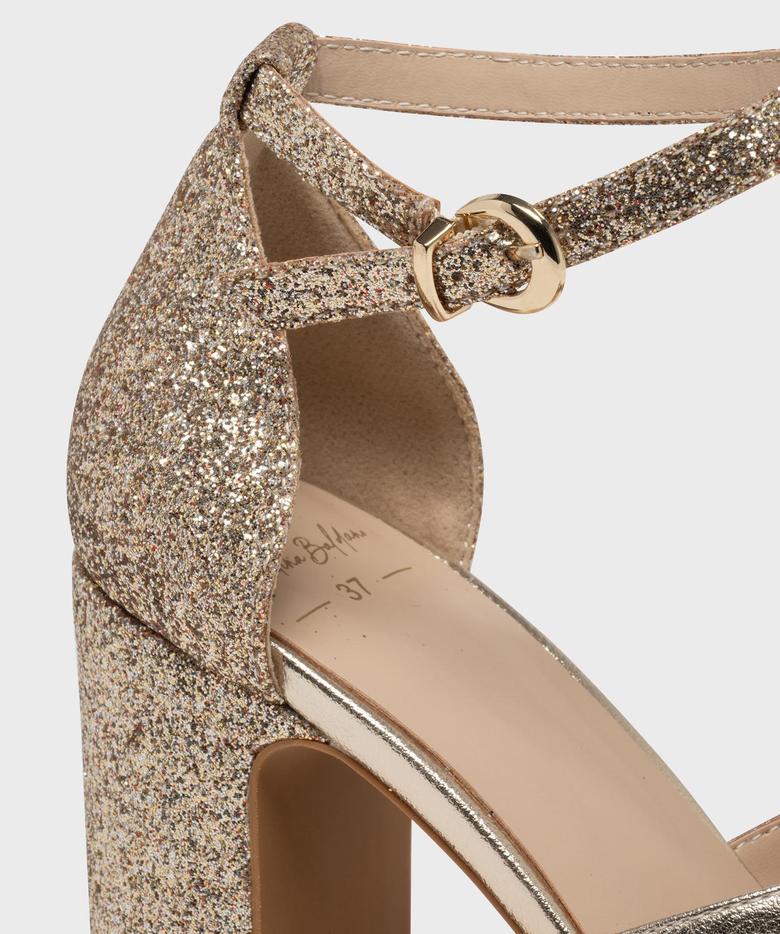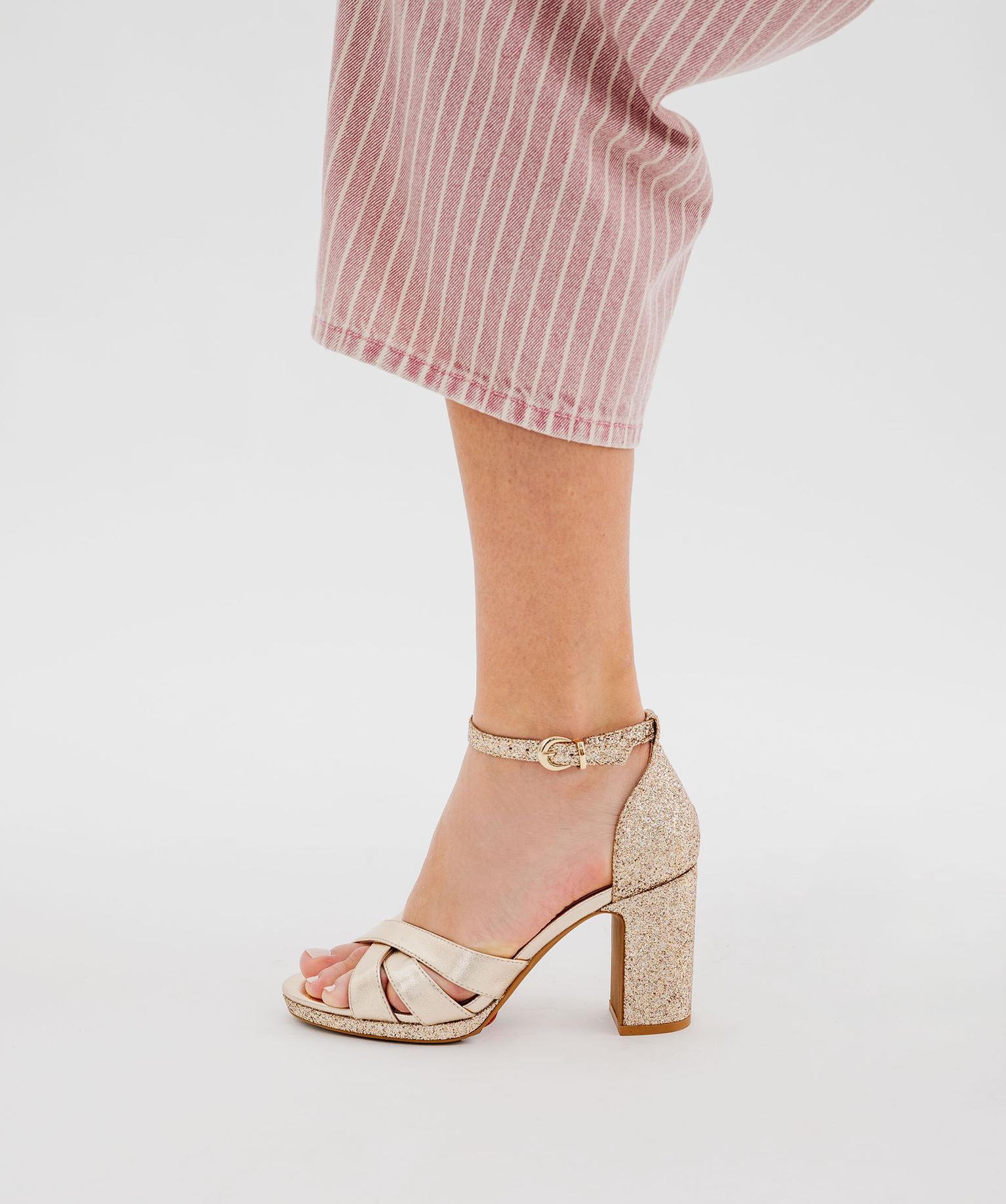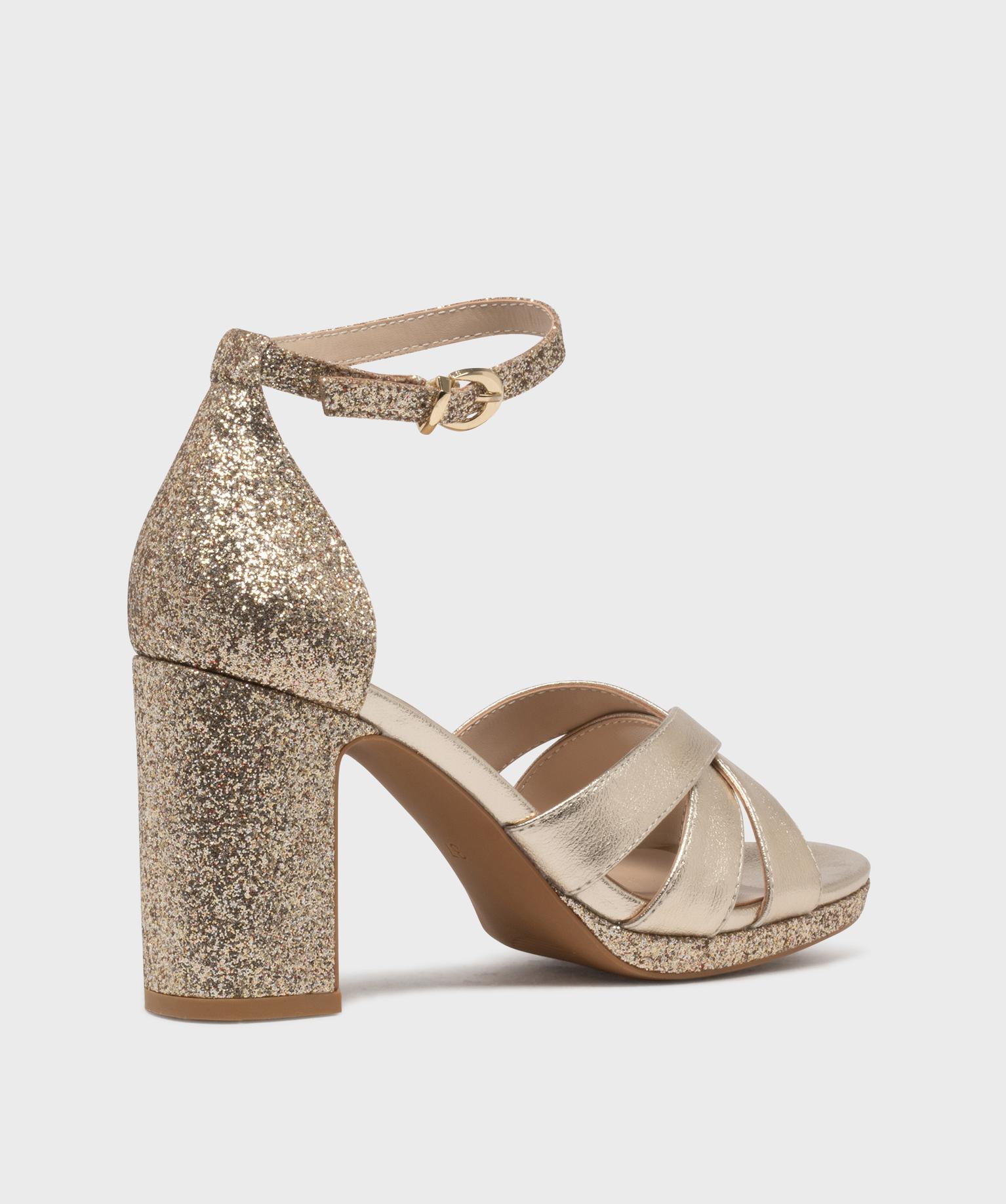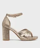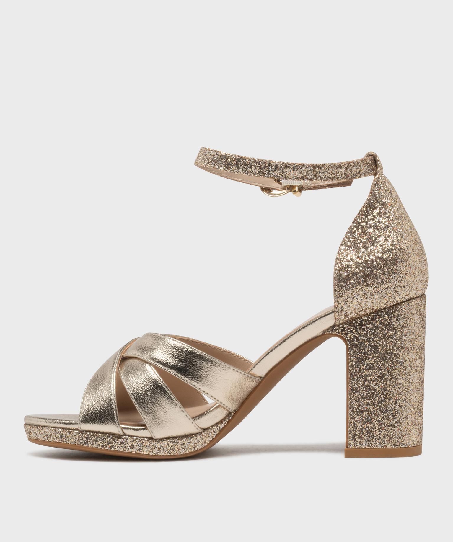 Sandales à talon haut métallisées et pailletées femme dore
