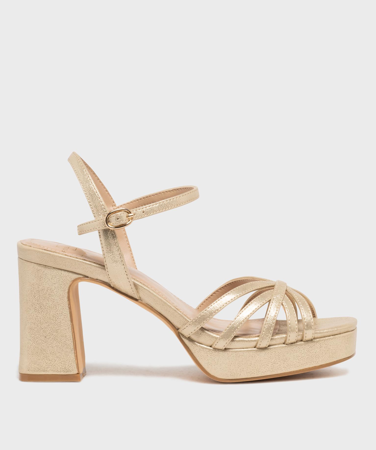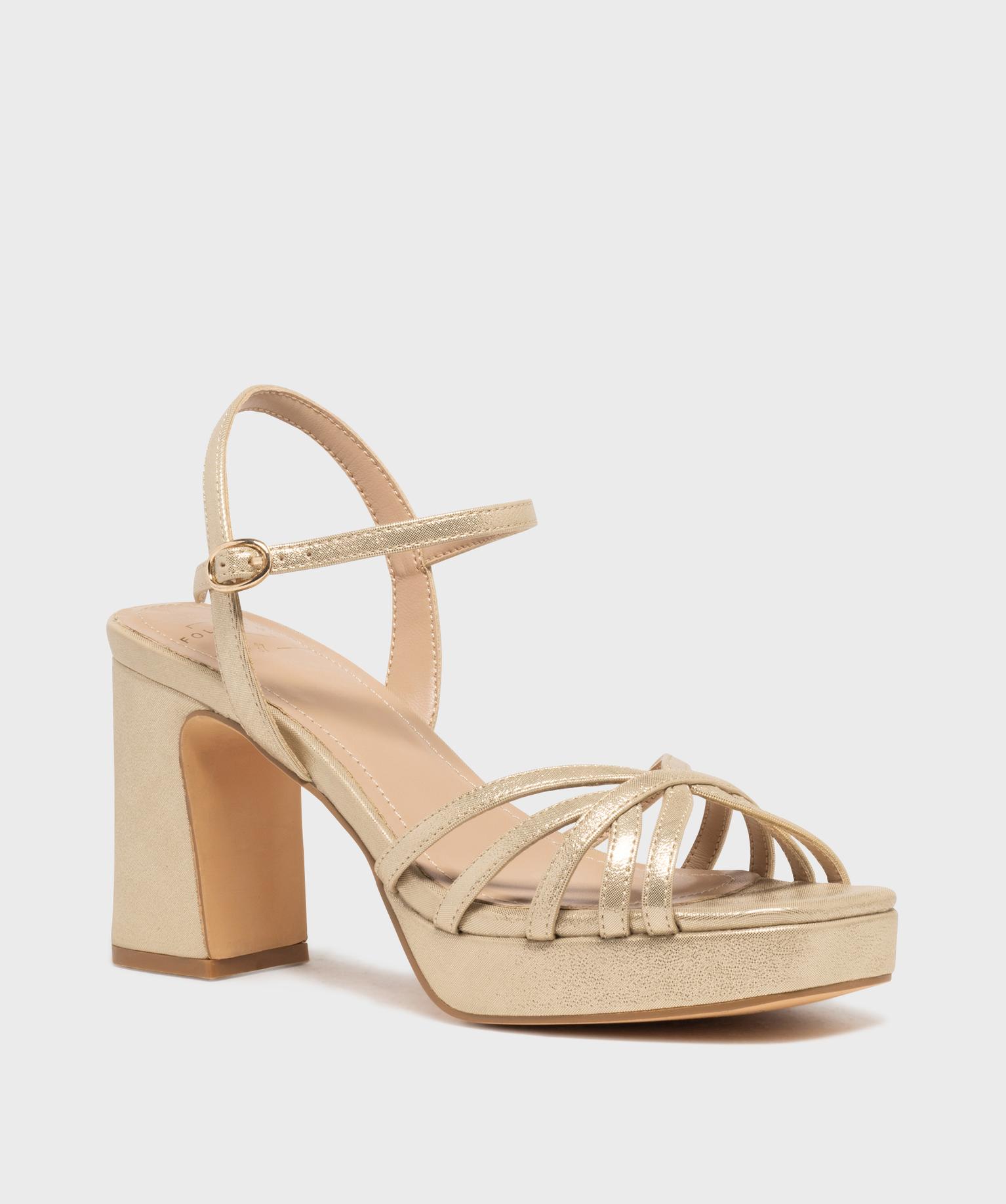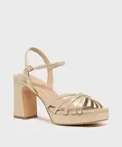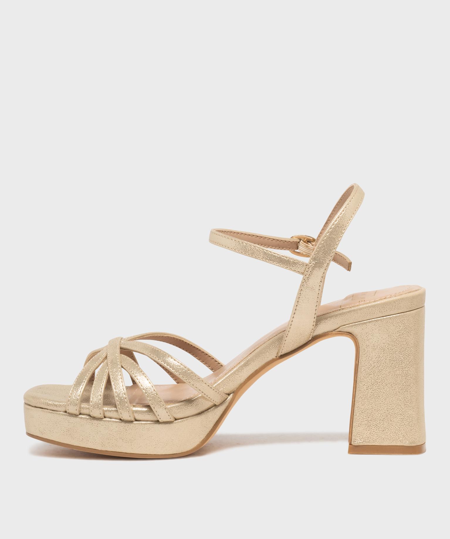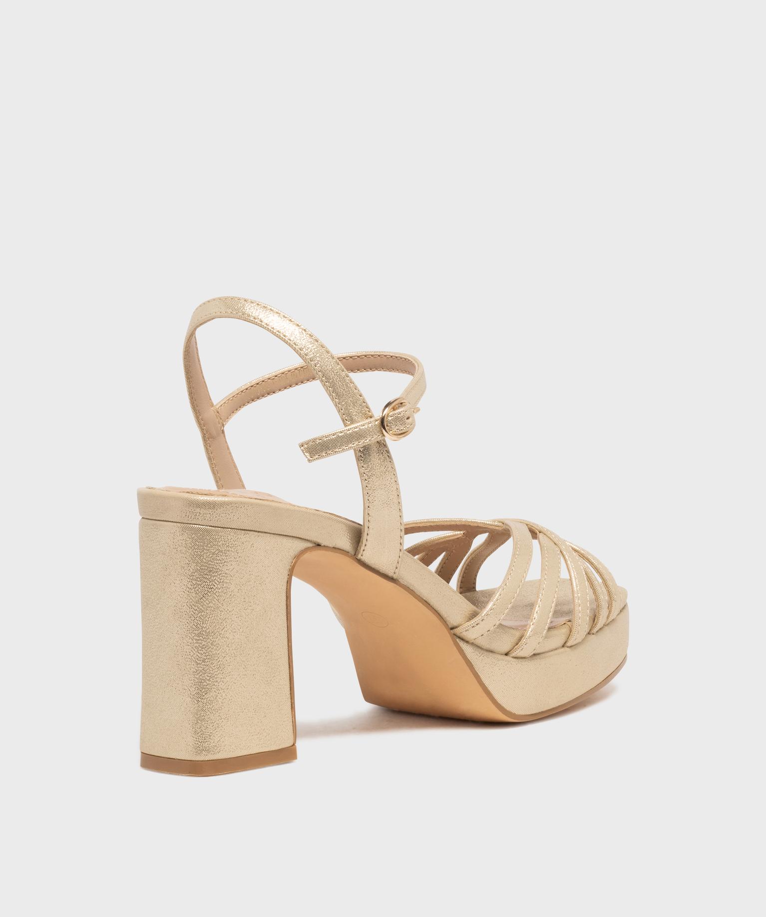 Sandales à talon haut, patin et fines brides dorées femme - Follow Me dore