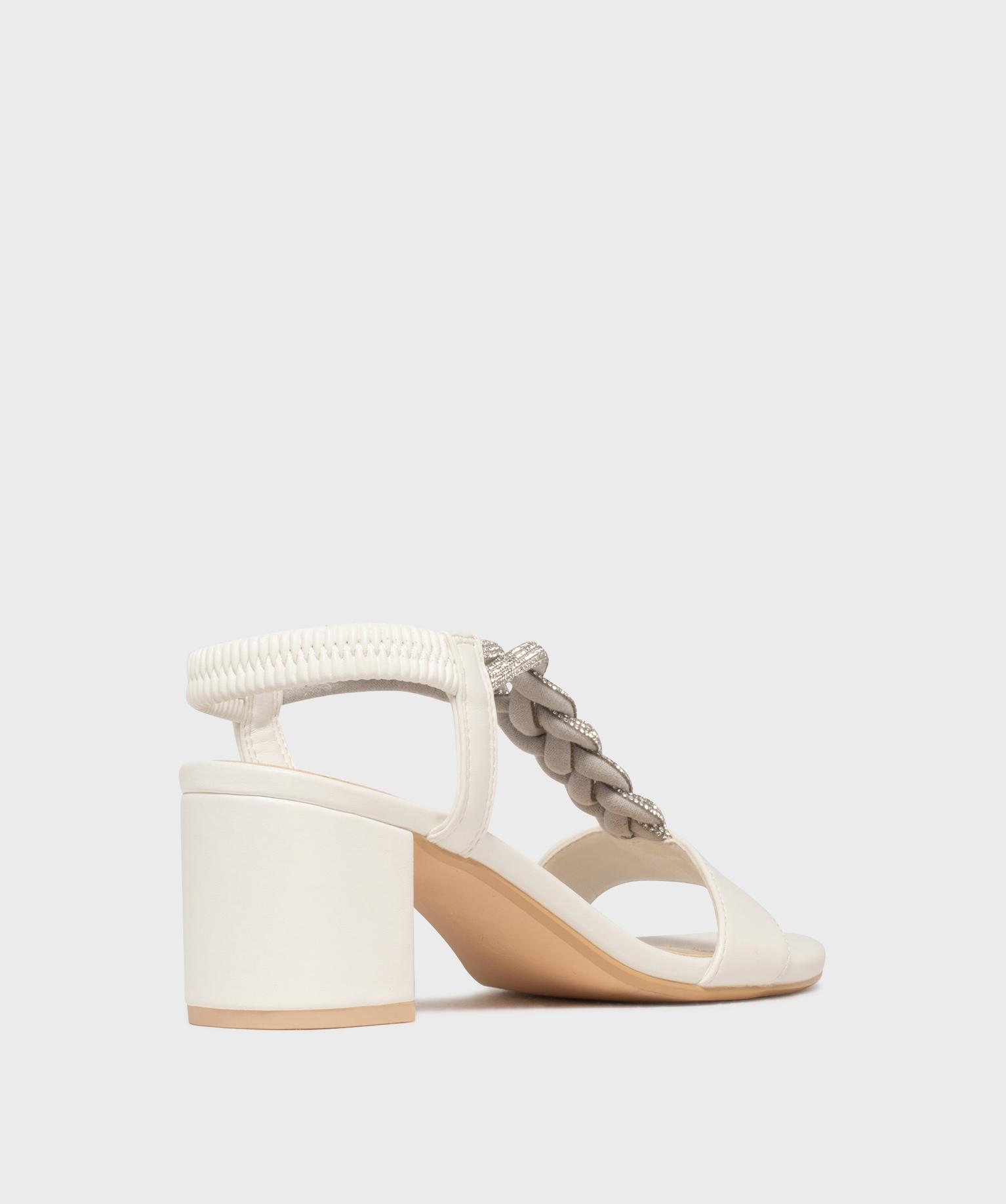 Sandales à talon large et bride bijou en strass femme blanc fa