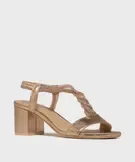 Ces sandales à talon large pour femme misent sur le glamour ! Elles sont dotées d'un talon de 6,5 cm et d'une bride cheville. Élastique, cette bride facilite l’enfilage tout en maintenant bien le pied. Sur le cou-de-pied, une tresse de brides entièrement recouvertes de strass crée un effet bijou éclatant. Une façon à la fois chic et originale d’habiller la sandale et d’offrir un maintien optimal. Parfaites pour illuminer une tenue sobre.