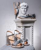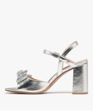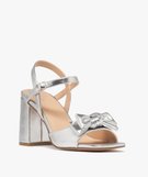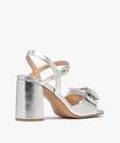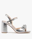 Sandales à talon large et gros nœud femme argente