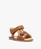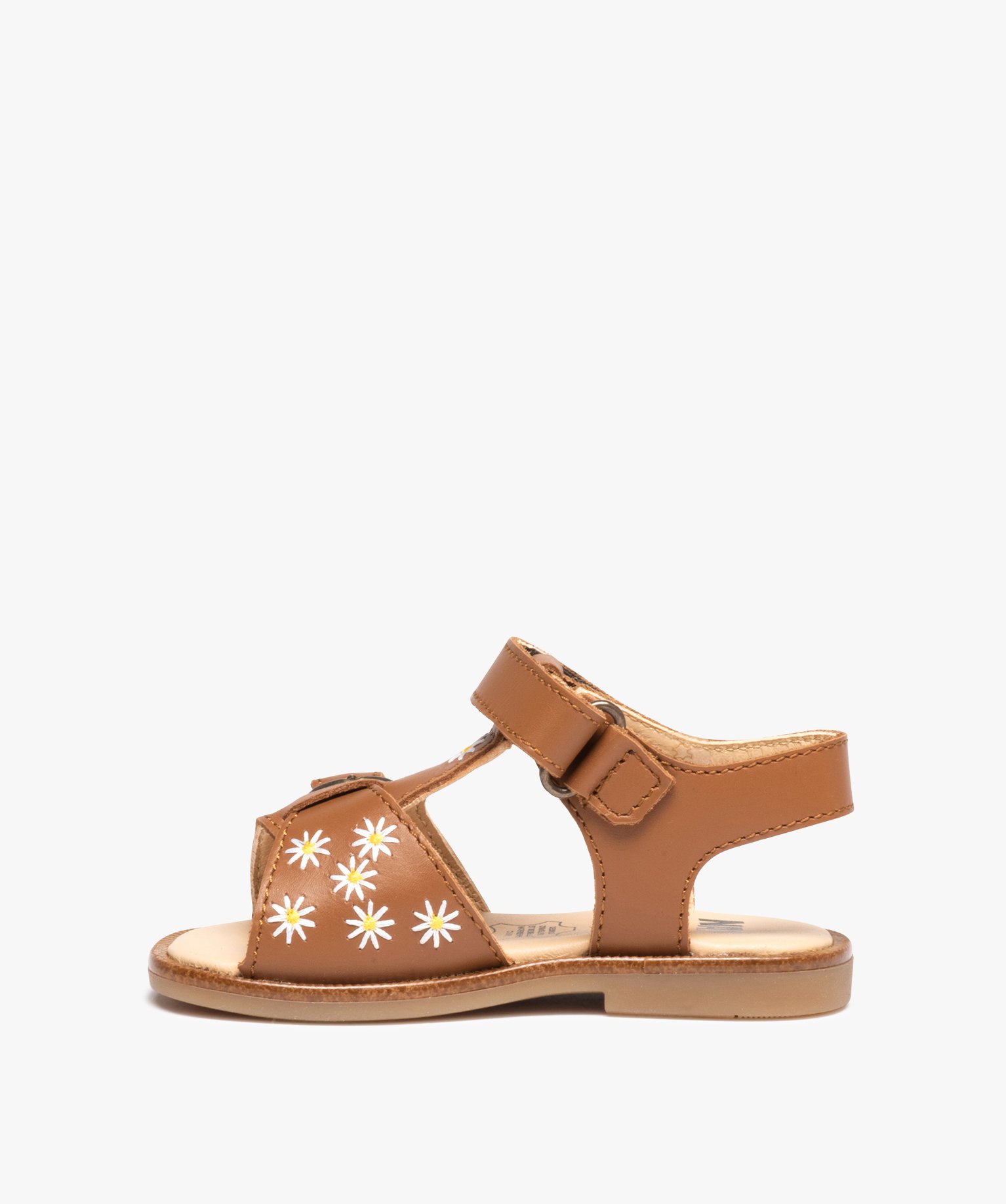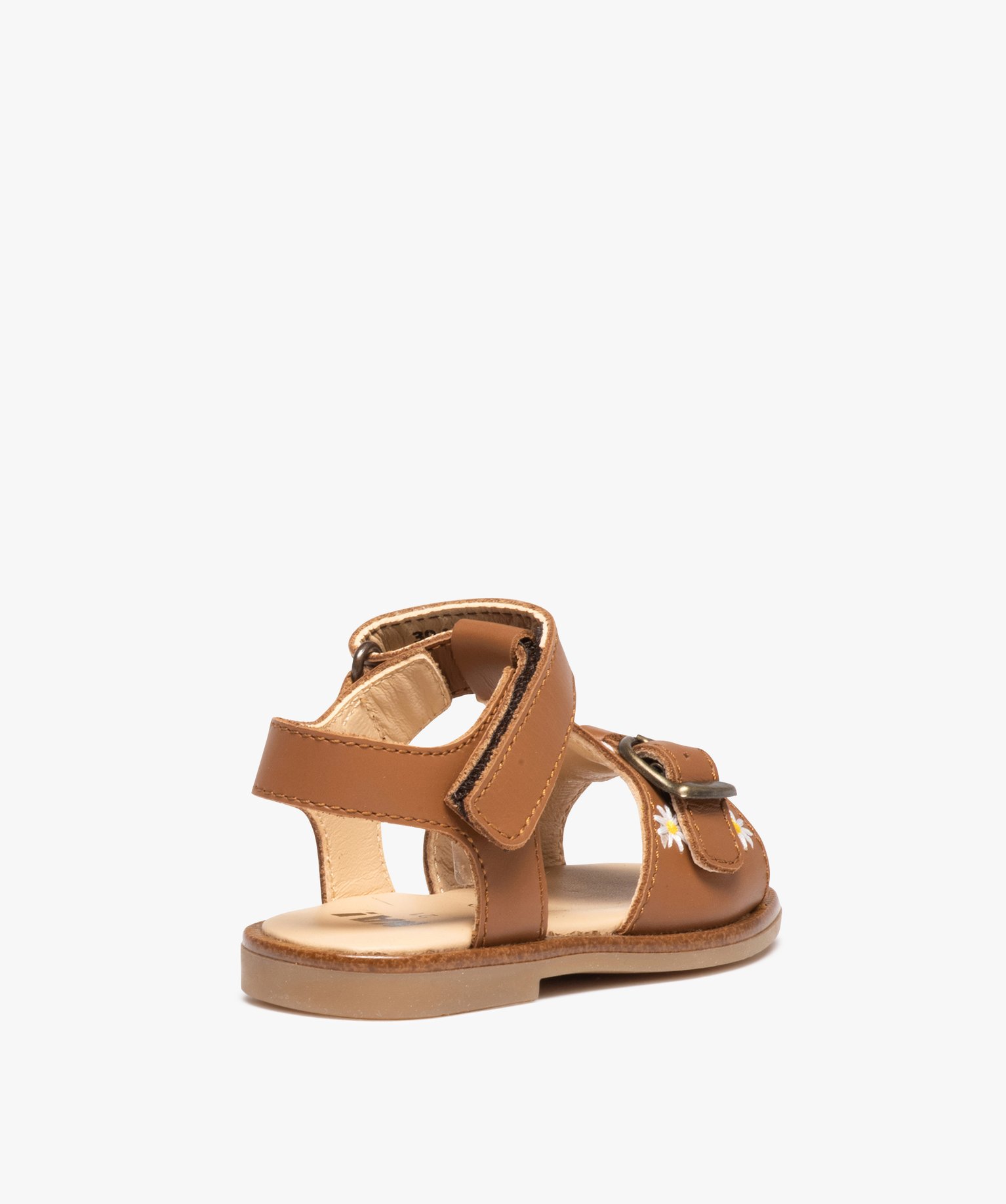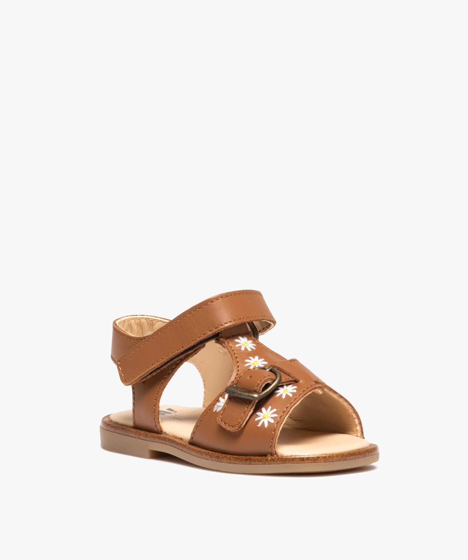 Sandales bébé fille à fleurs brodées et bride à scratch - NA! marron vif