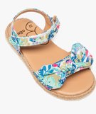 Au motif tropical, ces sandales pour bébé fille sont toutes mignonnes. Avec une bride cheville à scratch, elles sont simples à ajuster et à enfiler. En plus de participer au développement de l'autonomie de votre enfant, ces chaussures de marche estivales vont colorer toutes ses tenues : robes, bodys et ensembles de saison. On adore le noeud fantaisie décorant la bride avant, ainsi que le liseré en corde contrastant la semelle.