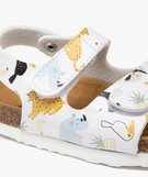 Optez pour une valeur sûre pour les premiers étés de votre bébé ! Avec leur épaisse semelle en liège marquée de reliefs ergonomiques, ces sandales pour bébé garçon répondent à toutes vos attentes en matière de bien-être et de style. Confortables et faciles à chausser, elles sont en plus ornées d’un adorable motif animaux multicolore. Ces nu-pieds sont équipés de deux larges brides scratch sur le dessus, permettant de s’adapter facilement à toutes les morphologies. De jolies sandales pour bébé, à porter avec un short et une chemisette colorée. Couche d'usure colorée.