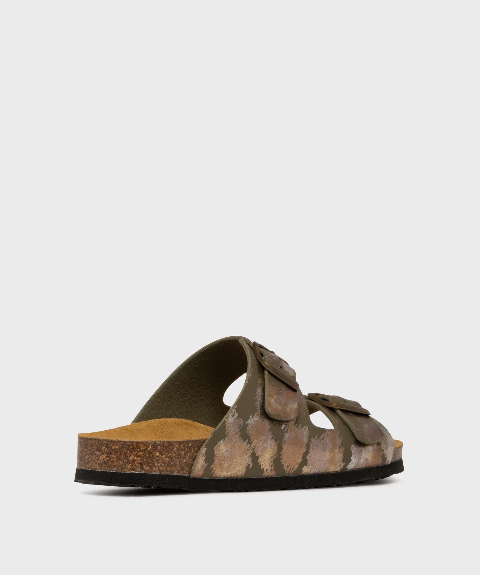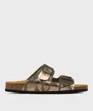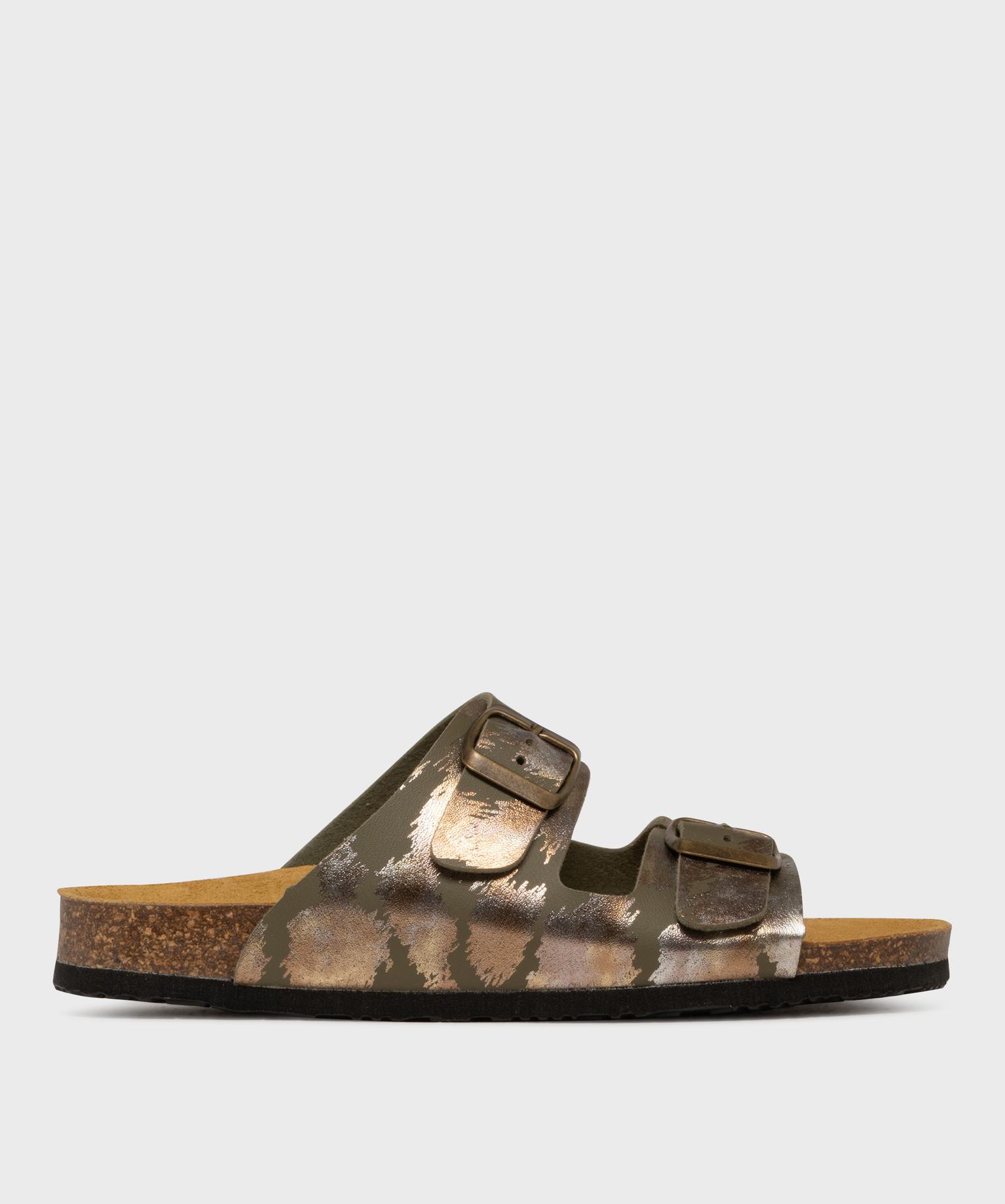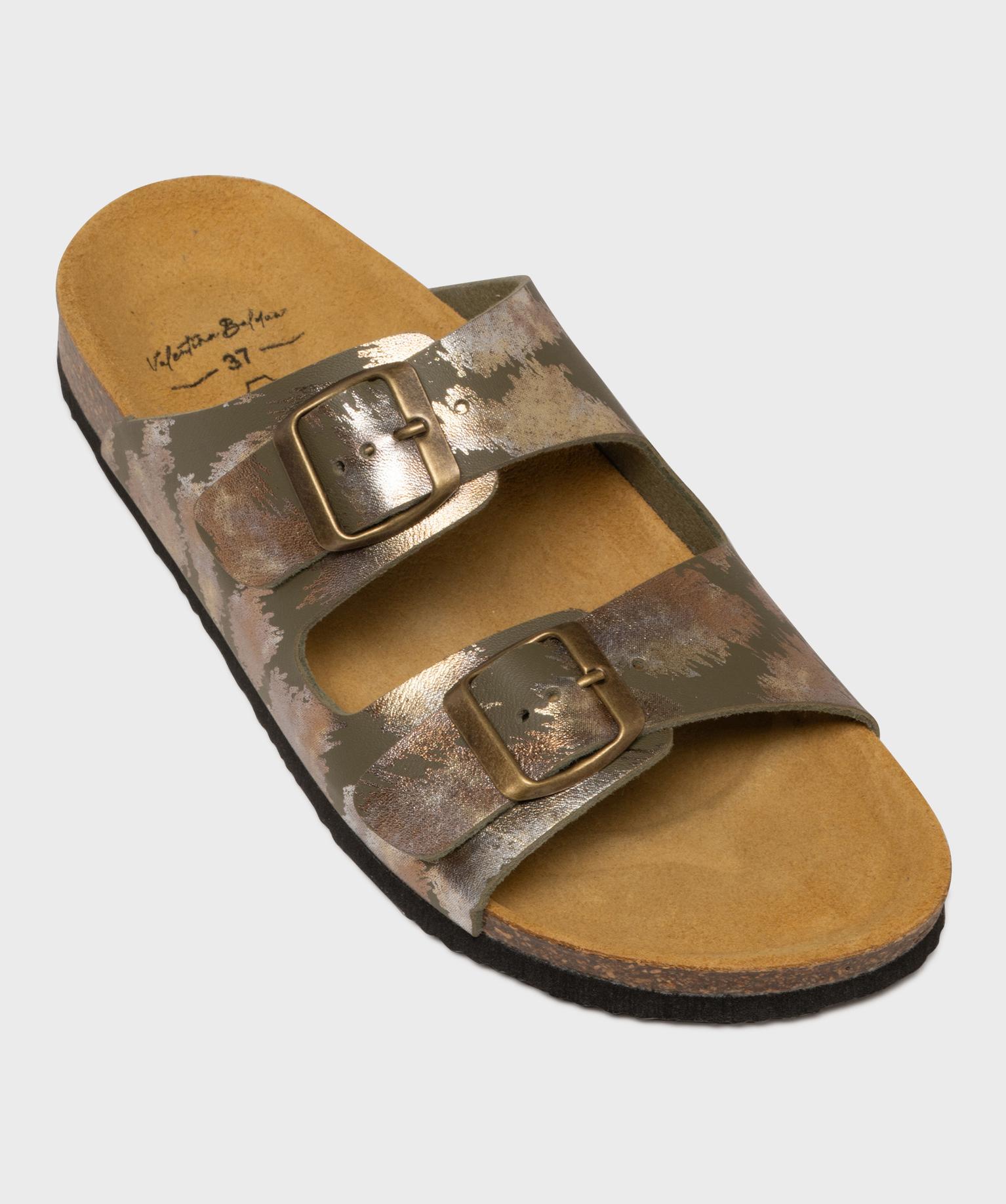 Sandales brillantes à semelle intérieure cuir anatomique femme kaki clair