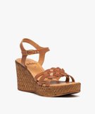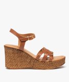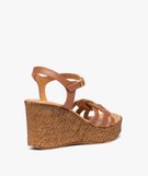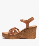Sandales compensées à brides tressées et semelle fantaisie femme marron
