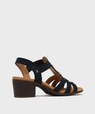 Ces jolies sandales femme sublimeront vos tenues estivales tout en vous procurant un grand confort de marche. Confectionnées dans une matière cuir imitation, elles sont surmontées de trois anneaux métalliques sur le cou-de-pied. Elles arborent une structure enveloppante avec de larges brides et d’élégants élastiques sur les côtés. Ces sandales confort reposent sur une semelle à bout carré ultra tendance et un petit talon à la hauteur idéale pour marcher sans fatiguer.