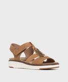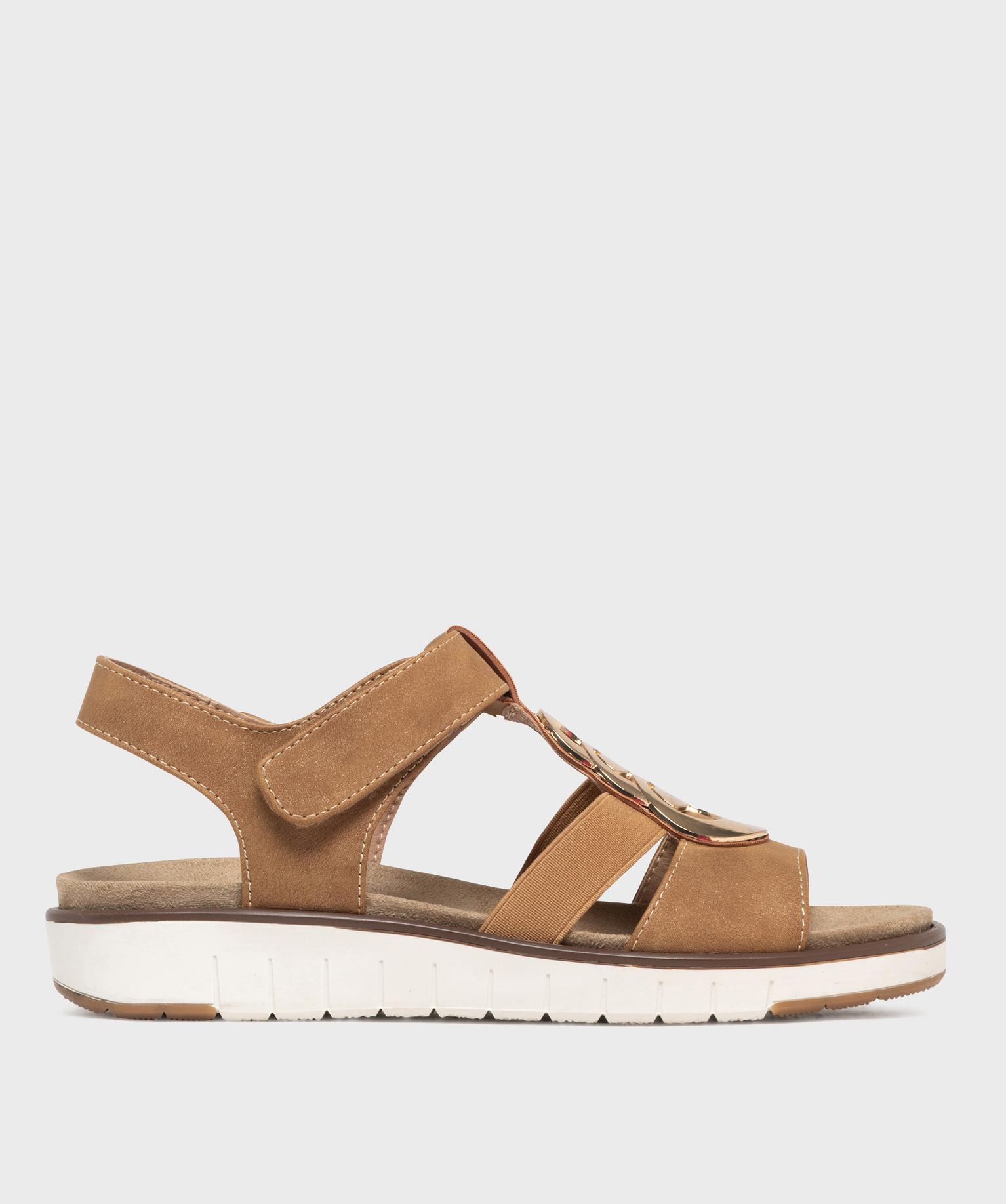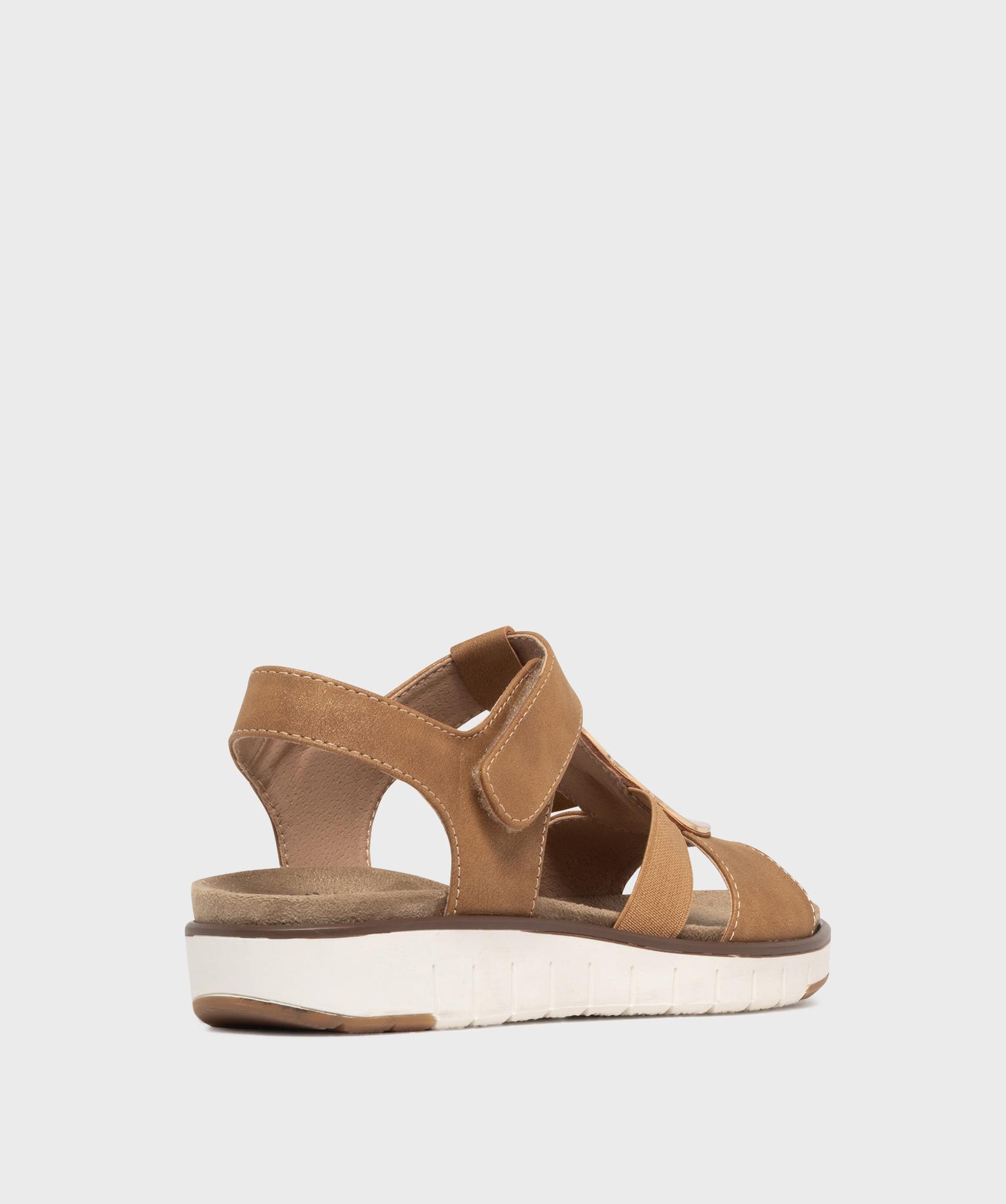 Sandales confort à talon compensé et scratch femme - G'flex beige fonce