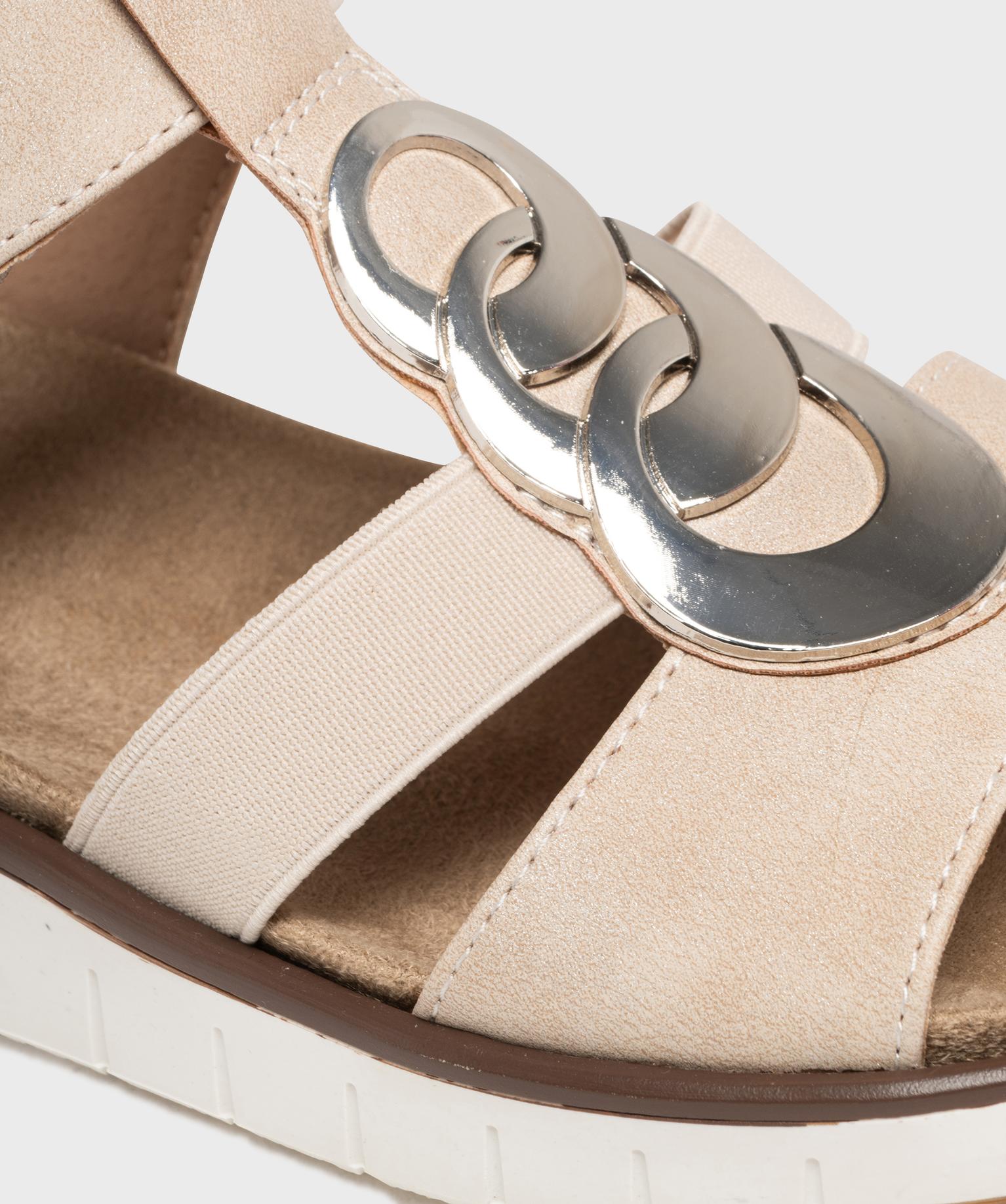 Sandales confort à talon compensé et scratch femme - G'flex beige clair