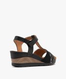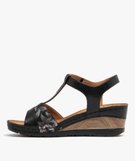 Ces sandales pour femme réussissent le pari audacieux d’allier confort et mode pour accompagner les pieds sensibles tout au long de l’été ! Grâce à leur forme Salomé, avec bride sur le cou-de-pied, leur large bride sur l’avant et une autre autour de la cheville, ces sandales confort offrent un parfait maintien du pied. Elles s’ajustent et se ferment à l’aide d’un scratch et reposent sur une semelle intérieure moussée, avec perforations pour une meilleure circulation de l’air. Dotées d’un talon compensé très stable, elles permettent de marcher sans fatiguer.
