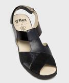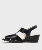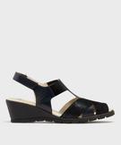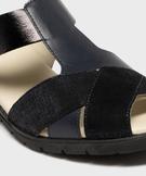Sandales confort dessus cuir fermeture scratch femme bleu fonce