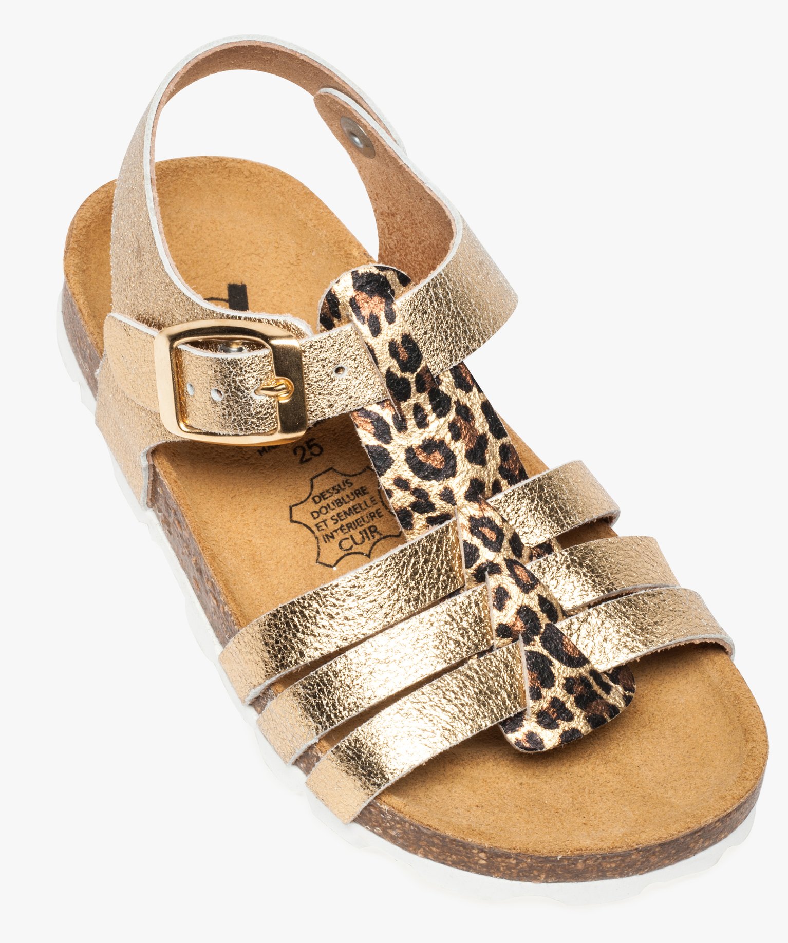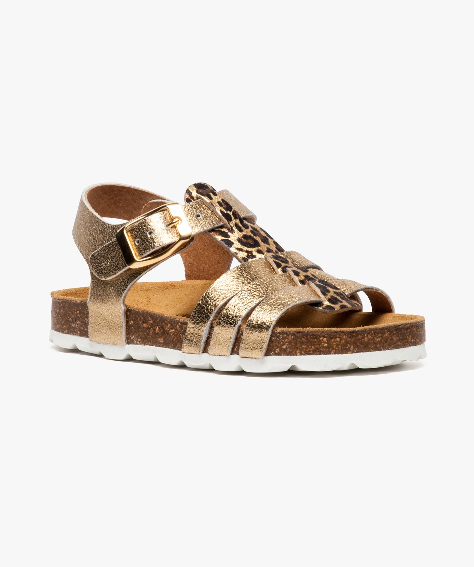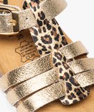 Les petites fashionistas seront séduites par l'originalité de cette paire de sandales où le doré flirte avec le motif léopard. Avec leur semelle intérieure anatomique en cuir et leur boucle de réglage sur le côté externe de la cheville, ces sandales sont également hyper confortables au quotidien. Elles rehausseront un pantacourt, s'associeront parfaitement à une jupe à sequins ou twisteront une jupe à volants.