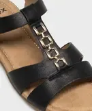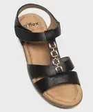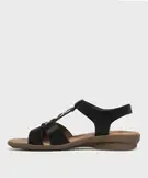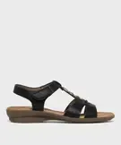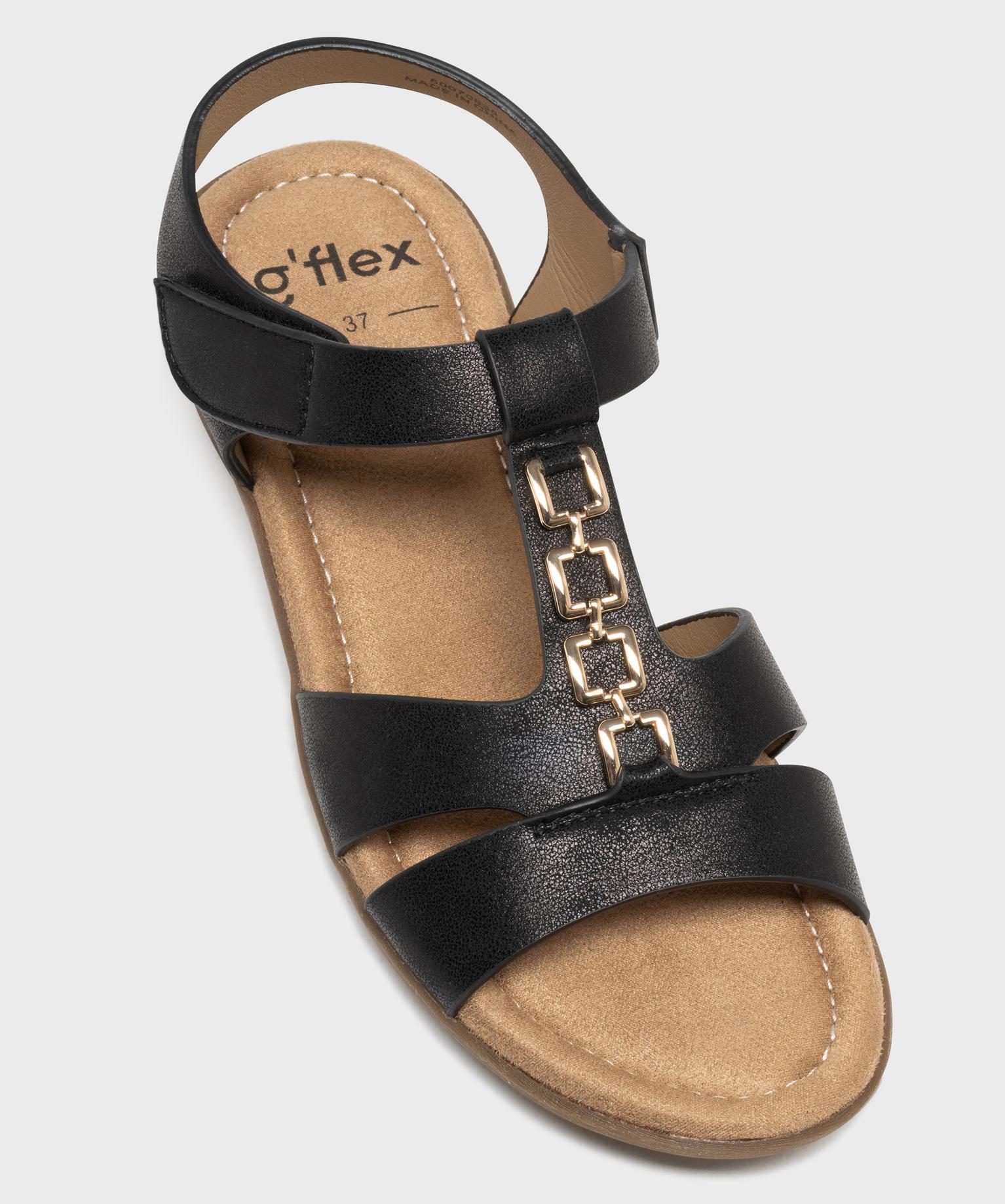 Ces sandales plates séduiront celles qui souhaitent allier confort et élégance en toutes circonstances. Conçues en cuir imitation, elles assurent un excellent maintien grâce à des brides recouvrant le dessus du pied et le tour de la cheville. Ces sandales confort femme sont ornées d’un bijou en métal doré qui capte la lumière et ajoute une touche de raffinement. Elles se ferment facilement par un scratch sur le côté. Ces nu-pieds sont dotés d’une semelle intérieure moelleuse et reposent sur une semelle souple avec petit talon. Ils se portent facilement avec toutes les tenues légères de l'été.