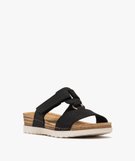 Pourquoi choisir entre confort et élégance quand ces sandales vous offrent les deux ? Ces sandales femme sont spécialement conçues pour les pieds sensibles. Elles possèdent de larges brides en cuir sur le dessus, réunies par une boucle métallique, et fermée par une bride à scratch permettant un ajustement idéal. Leur semelle intérieure, également en cuir, avec mousse intégrée, offre un excellent confort. Elles sont posées sur une semelle aspect rotin légèrement compensée, avec couche d’usure en caoutchouc crantée. Ces sandales confort accompagneront avec style toutes les tenues de l’été.