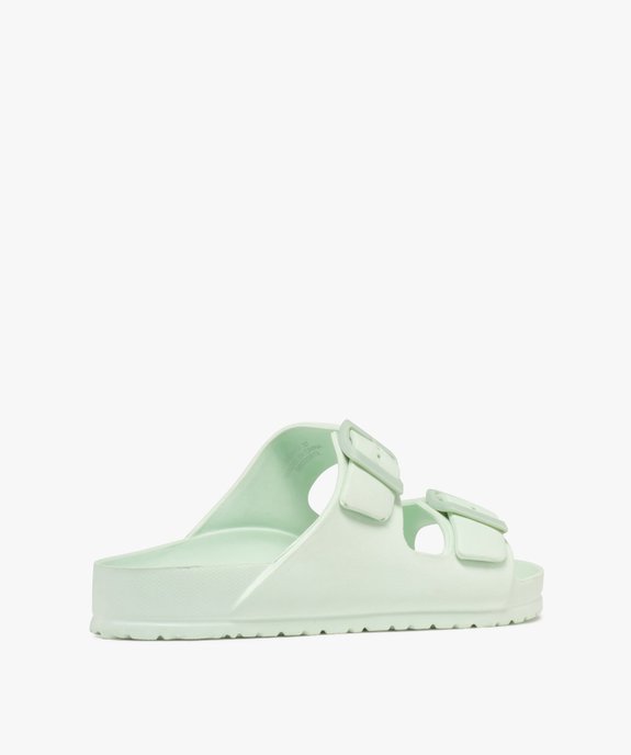 Alliant style, confort et légèreté, les sandales de plage pour femme sont de véritables atouts dans votre vestiaire estival. Avec leur forme mule, elles s’enfilent facilement et offrent un excellent confort grâce à leur semelle intérieure de forme anatomique. Ces sandales de piscine possèdent deux brides réglables par boucle pour un ajustement idéal. Déclinées dans un coloris tendance, elle peuvent même se porter en ville, s'accordant volontiers à un short en jean effilé et un crop-top.