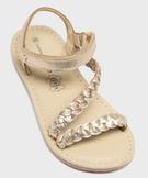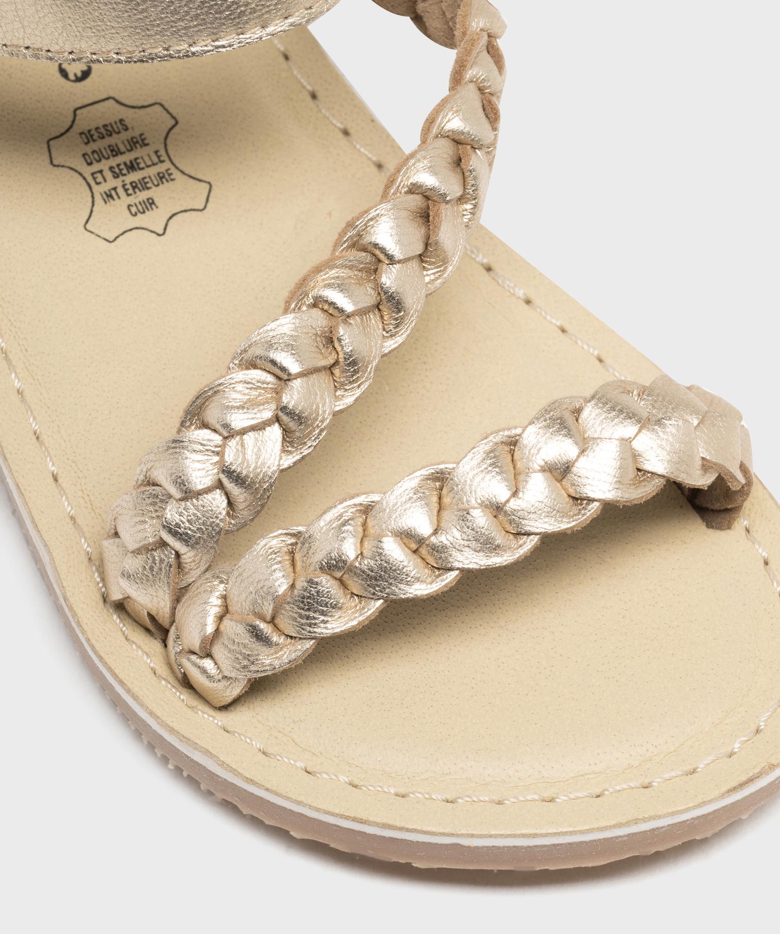 Sandales dessus cuir tressé fermeture scratch fille - LuluCastagnette dore