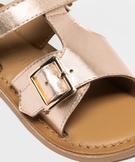 Quand le style rencontre le confort, LuluCastagnette n'est pas loin ! Entièrement conçues en cuir métallisé, ces sandales fille recouvrent joliment le pied grâce à une tige en T et une bride autour de la cheville ornée d'un petit clou avec ourson embossé. L’ajustement se fait avec précision grâce à une boucle à ardillon sur l’avant et un scratch à la cheville. Pour plus de confort, ces sandales à scratch sont entièrement doublées de cuir et possèdent une semelle intérieure en cuir rembourrée offrant un accueil confortable pour les petits pieds. Des sandales en cuir à porter aussi bien avec un short en jean, une robe ou une tenue de cérémonie.