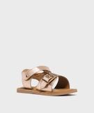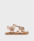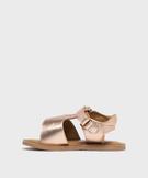 Sandales en cuir métallisé fermeture scratch fille - LuluCastagnette rose clair