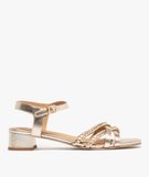 Sandales en cuir multibrides à talon large femme - Tanéo dore