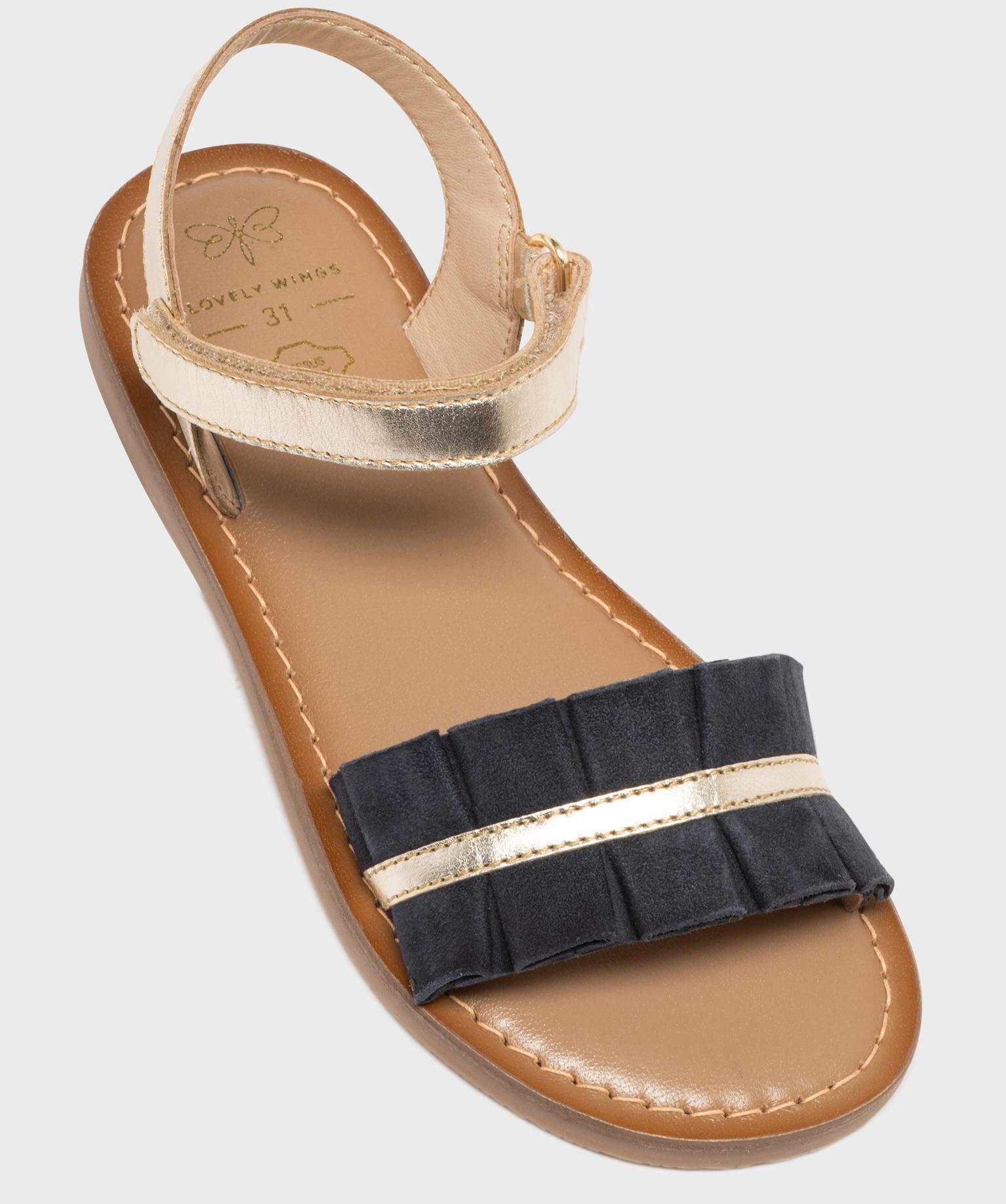 Sandales en cuir suédé et plissé fille - Lovely Wings dore