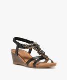 Sandales femme à bride talon élastique ornée de perles noir