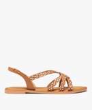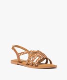 Sandales femme à brides tressées métallisées – Tanéo marron