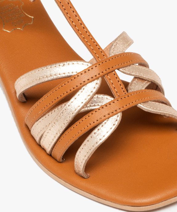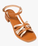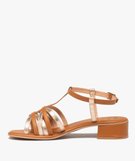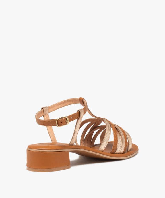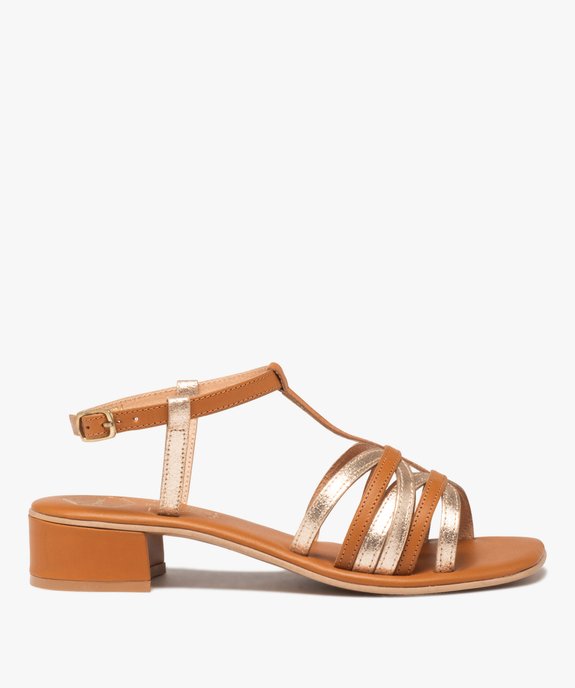 Sandales femme à petit talon carré en cuir avec brides métallisées - Tanéo marron